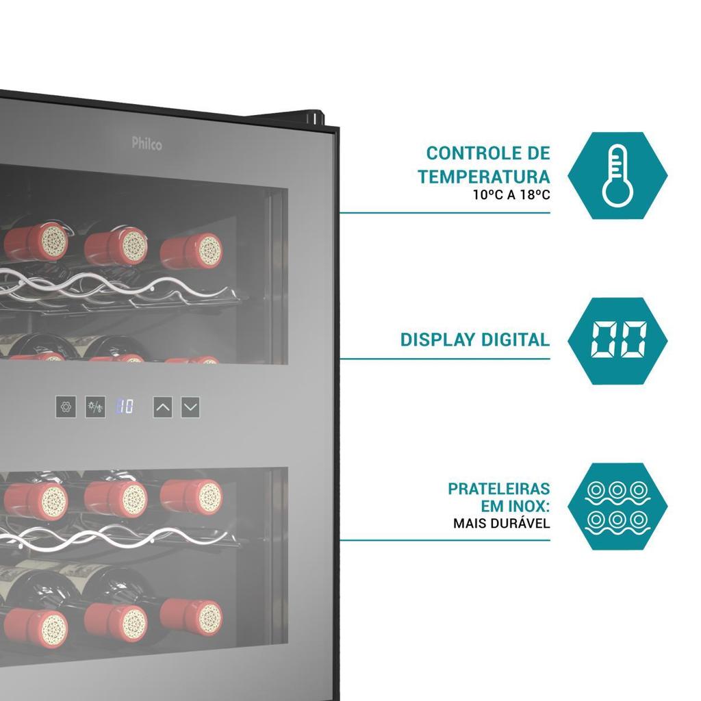 Adega Philco 16 Garrafas Display Digital Bivolt PAD16E