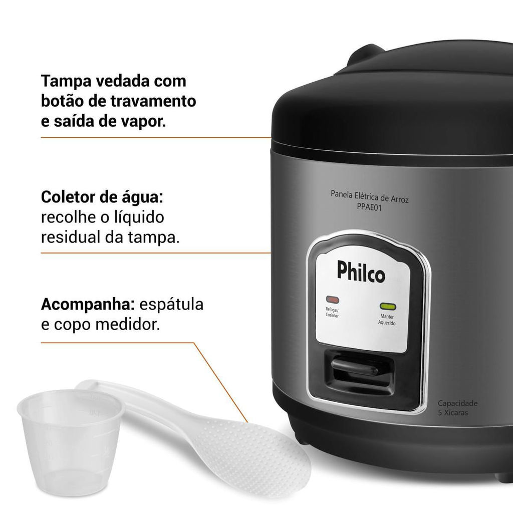 Panela de Arroz Elétrica Philco 5 Xícaras 1,6L PPAE01