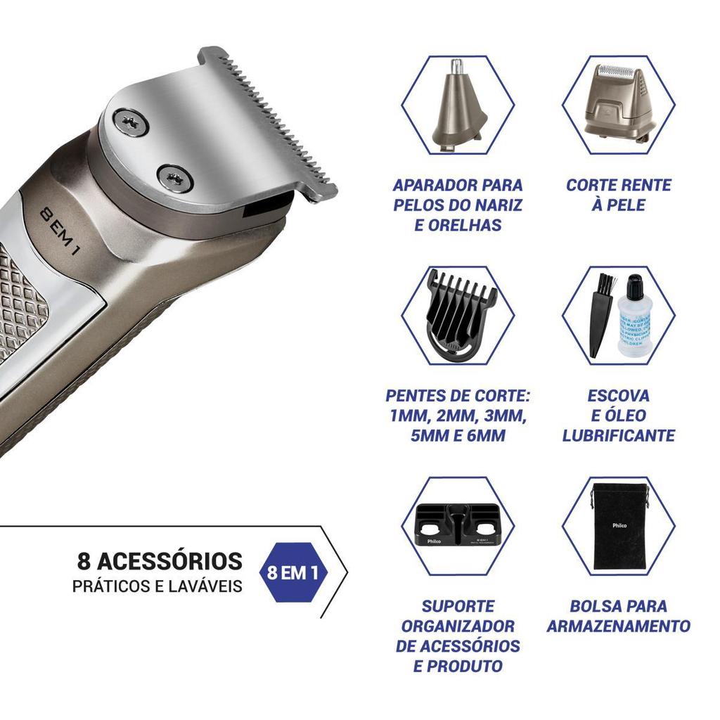 Aparador de Pelos Philco Multigroom 8 em 1 5W PAP16