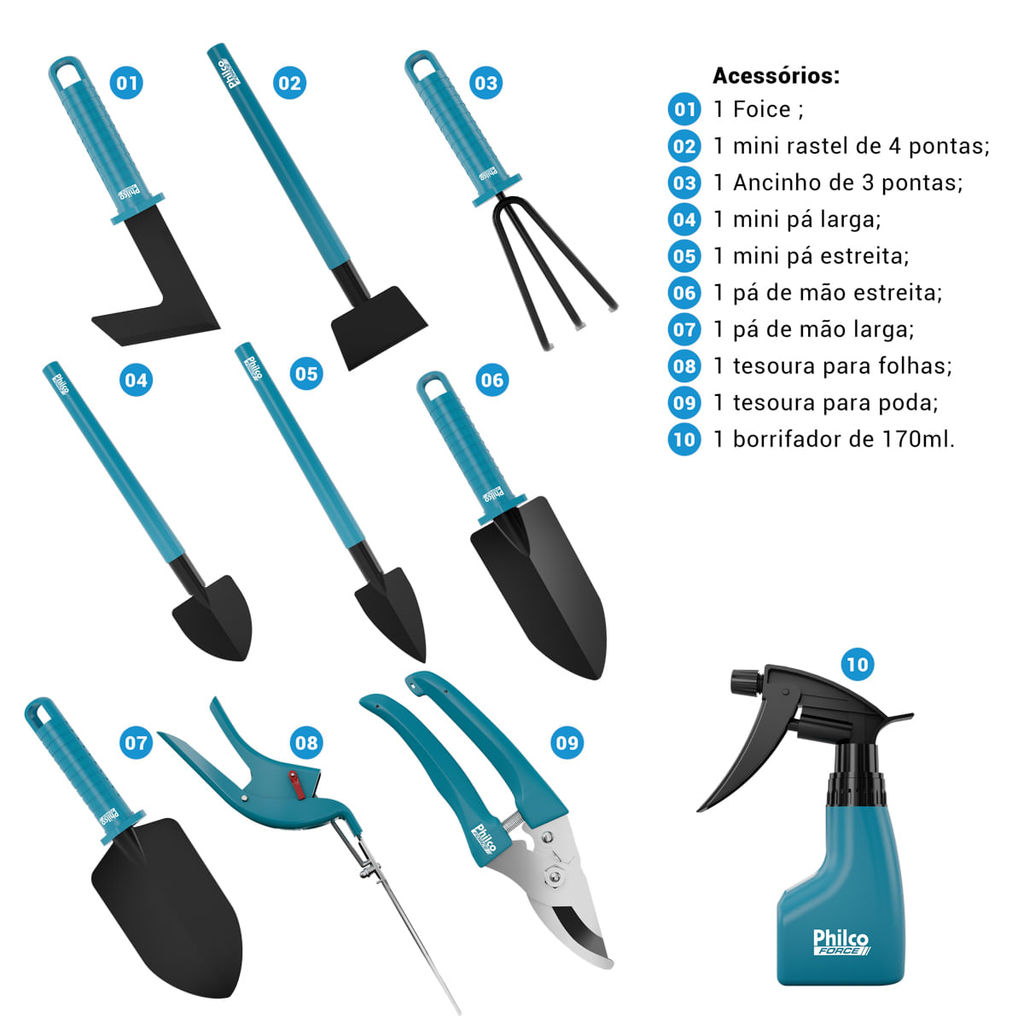 Kit Jardinagem Philco 10 Ferramentas PKJ10