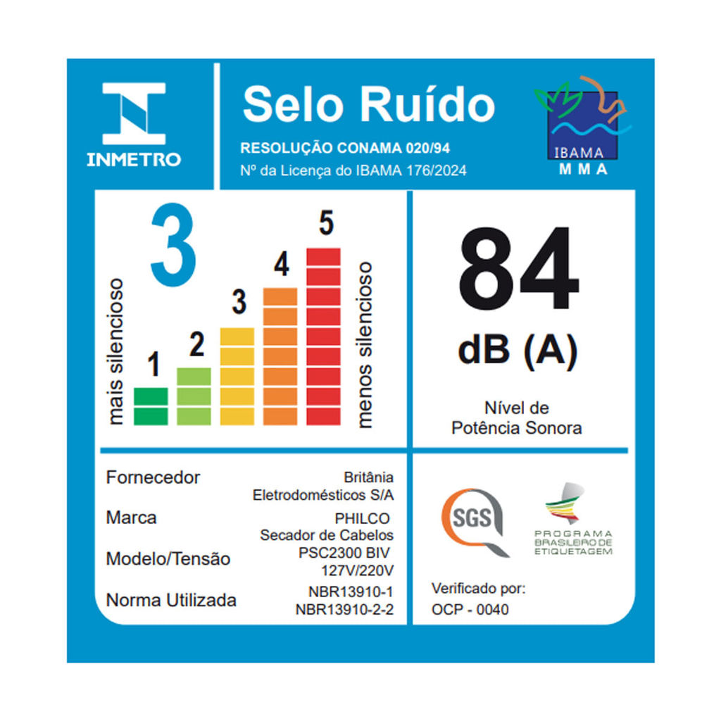 Secador de Cabelos Philco Motor DC 2200W Bivolt PSC2300