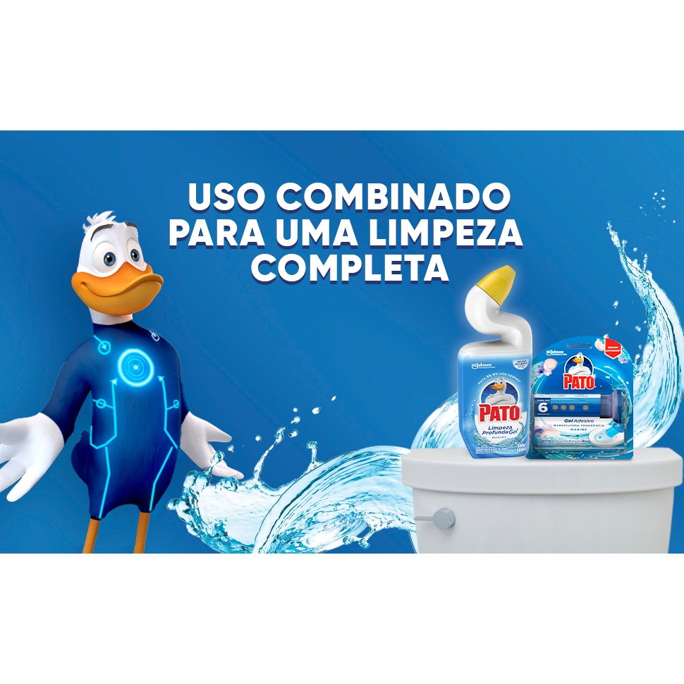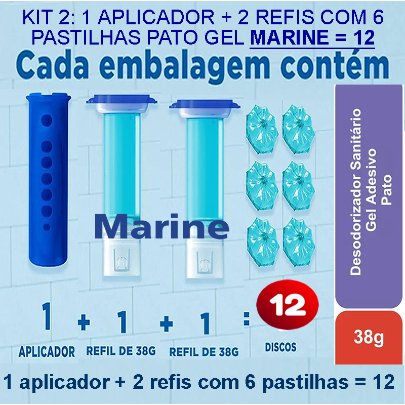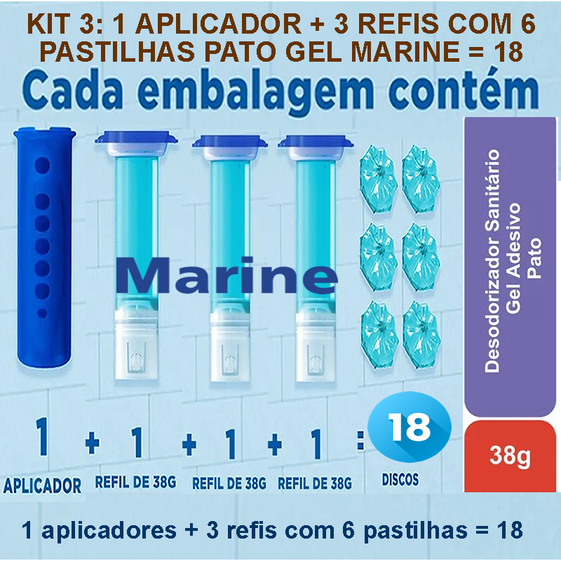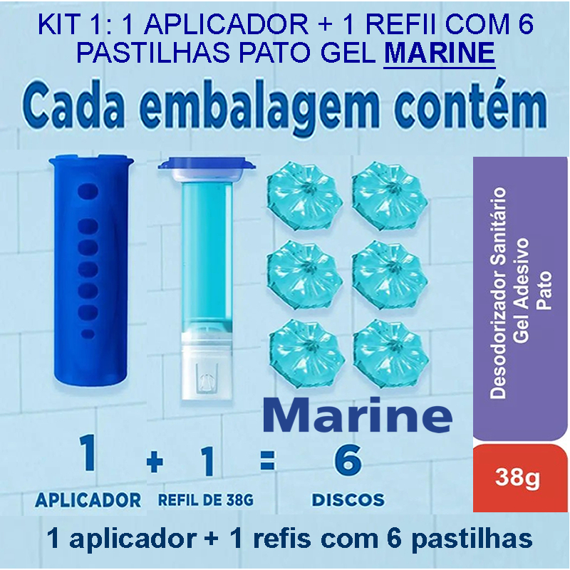 Desodorizador Sanitário Pato Gel Adesivo Marine, Aplicadores + Refis Marine, escudo antiodor.