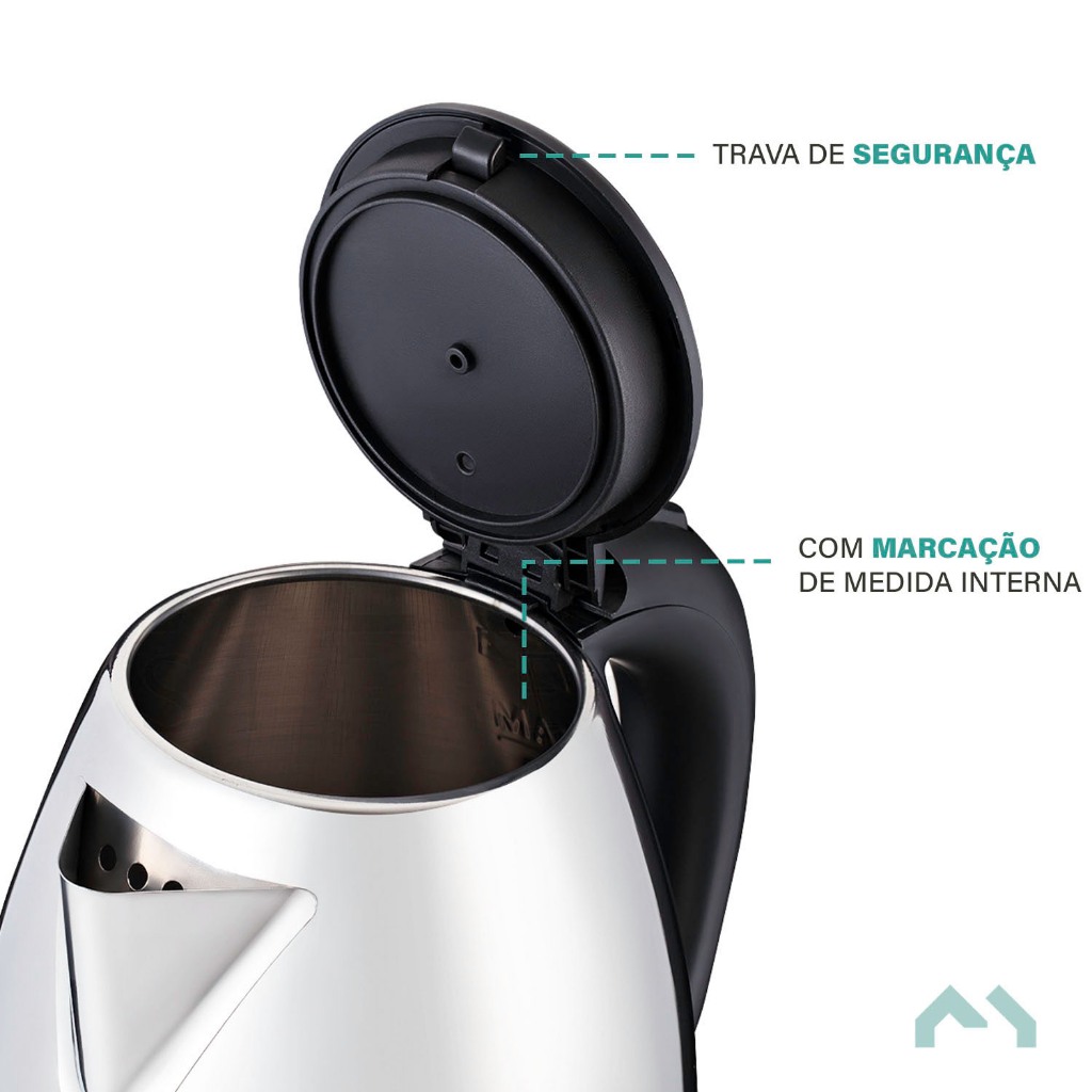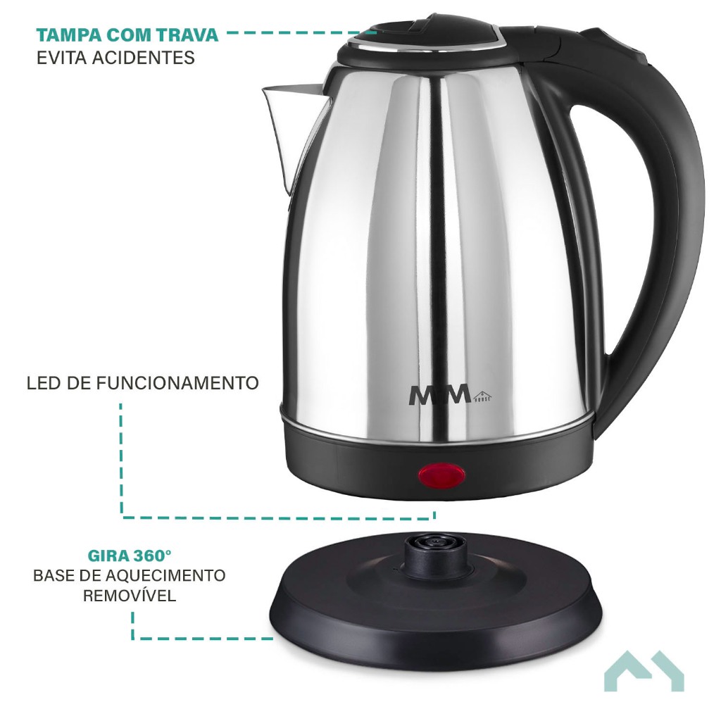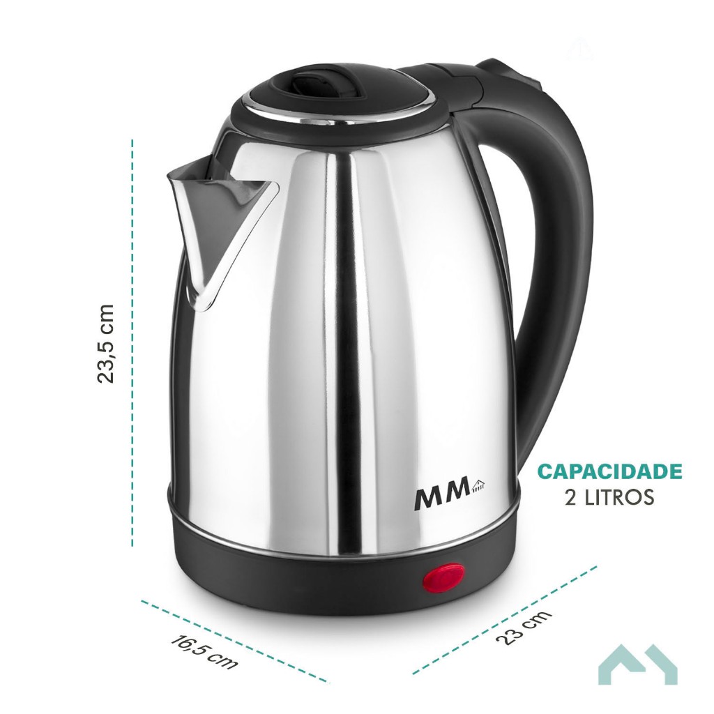 Chaleira Elétrica Aço Inoxidável 2 Litros Prata 127V ou 220V MMHouse