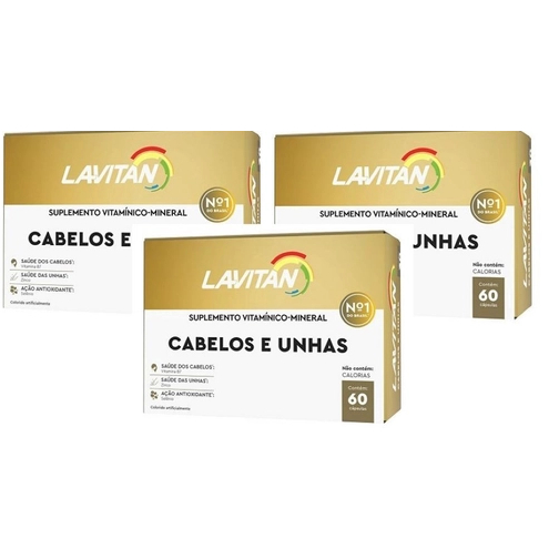 KIT 3UN LAVITAN CABELOS E UNHAS 60COMP CADA