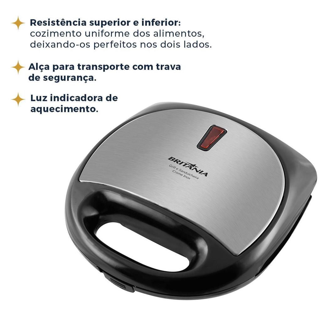 Grill e Sanduicheira Britânia Crome Inox 750W