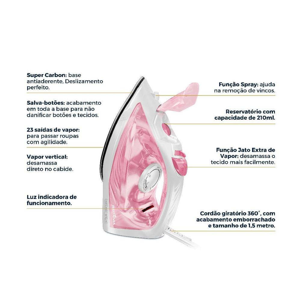 Ferro de Passar a Vapor Britânia Rosa Vapor Extra BFVE01A