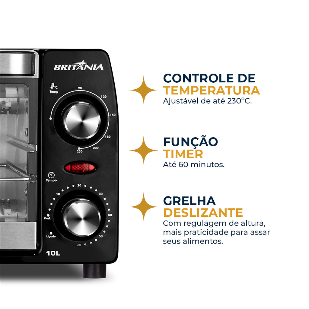 Forno Elétrico Britânia 10L Preto 2 Resistências 1050W BFE11
