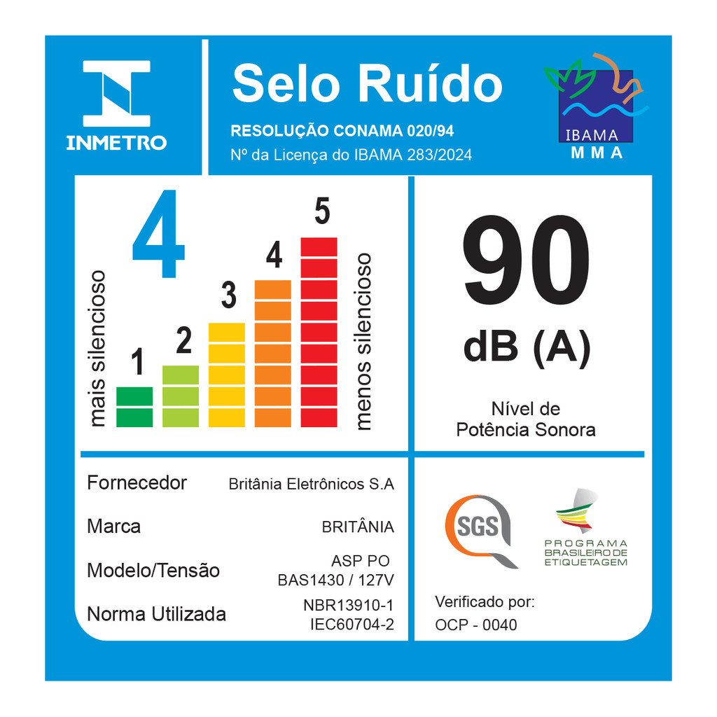 Aspirador de Pó Britânia 2 tubos prolongadores 1250W Bas1430