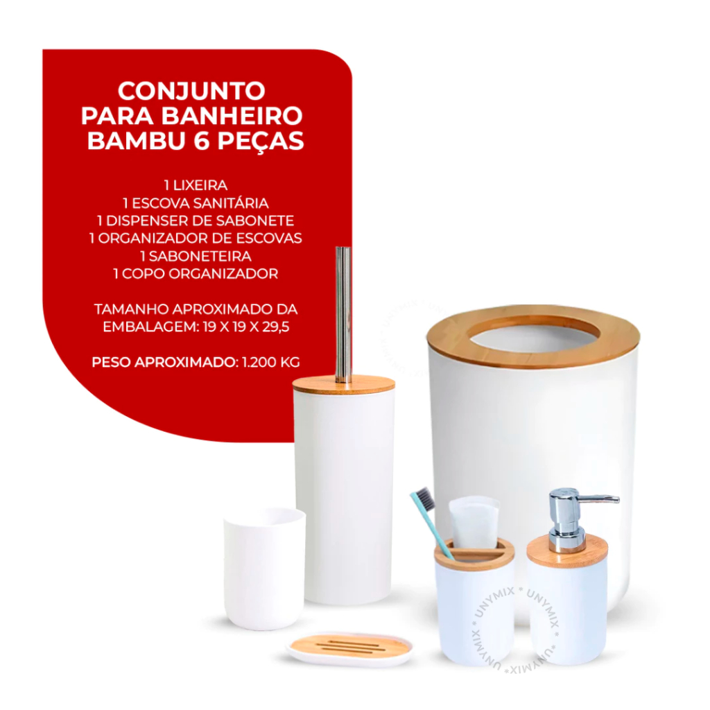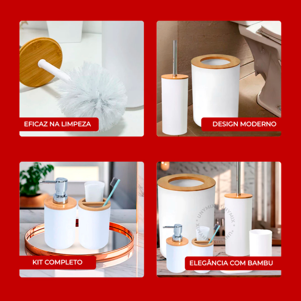 Kit Banheiro Em Bambu Com Lixeira Tampa Detalhes Luxo