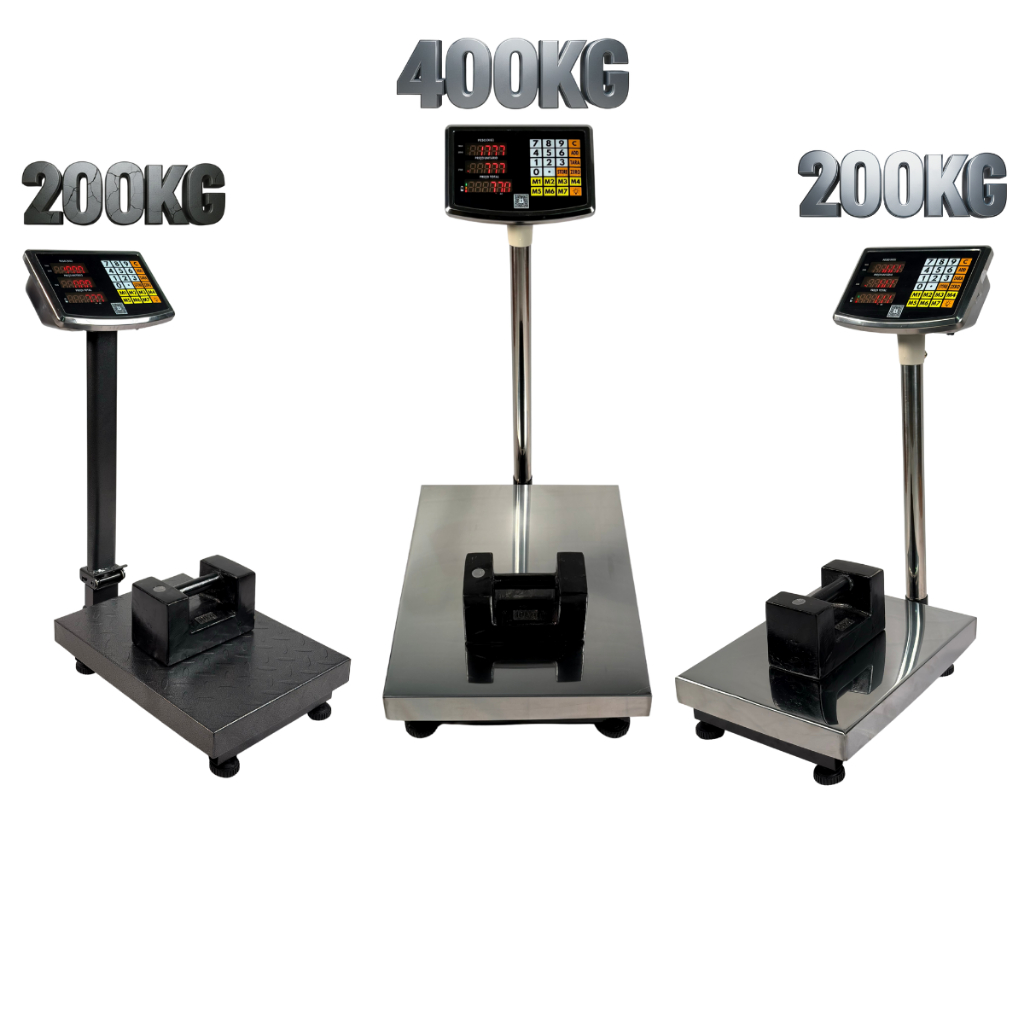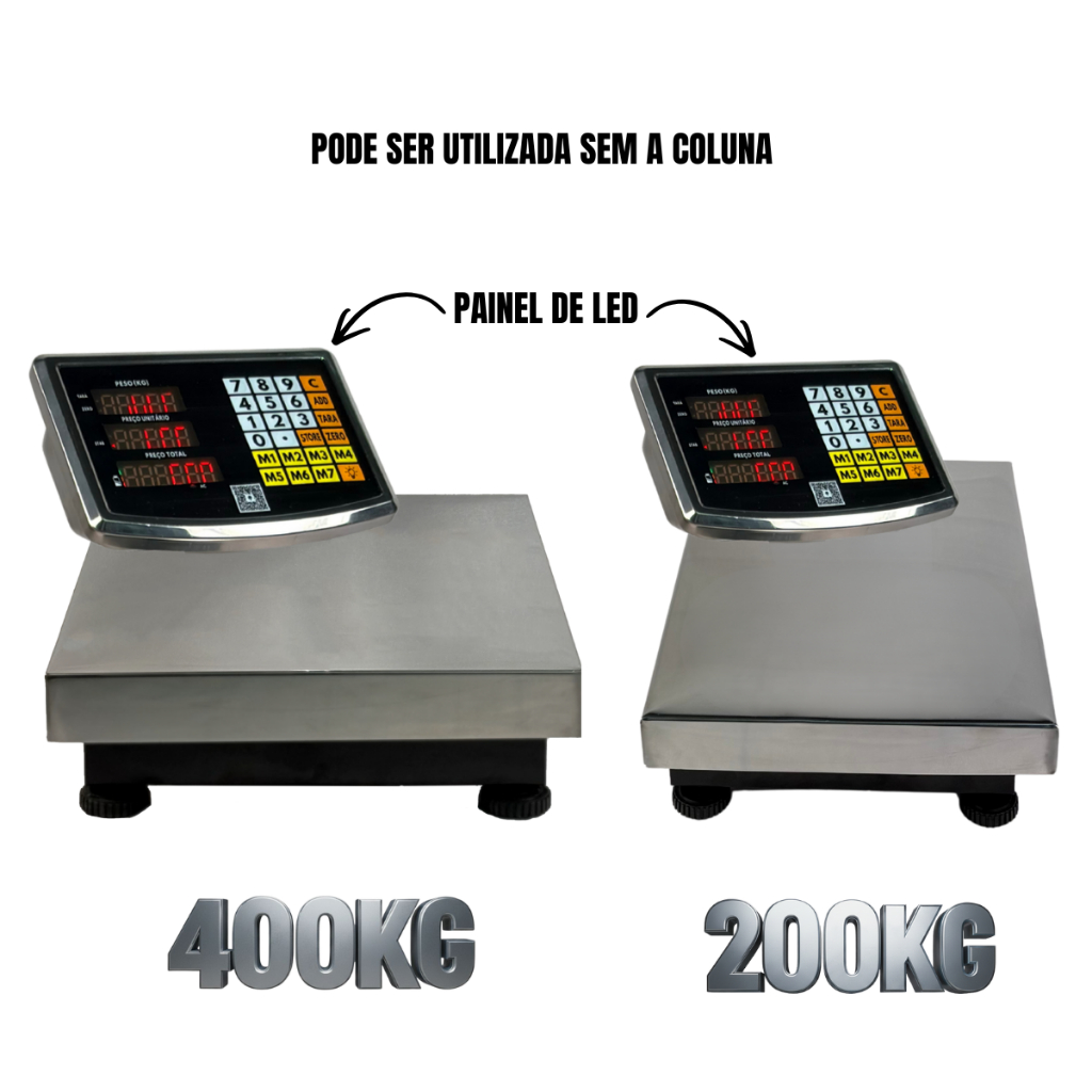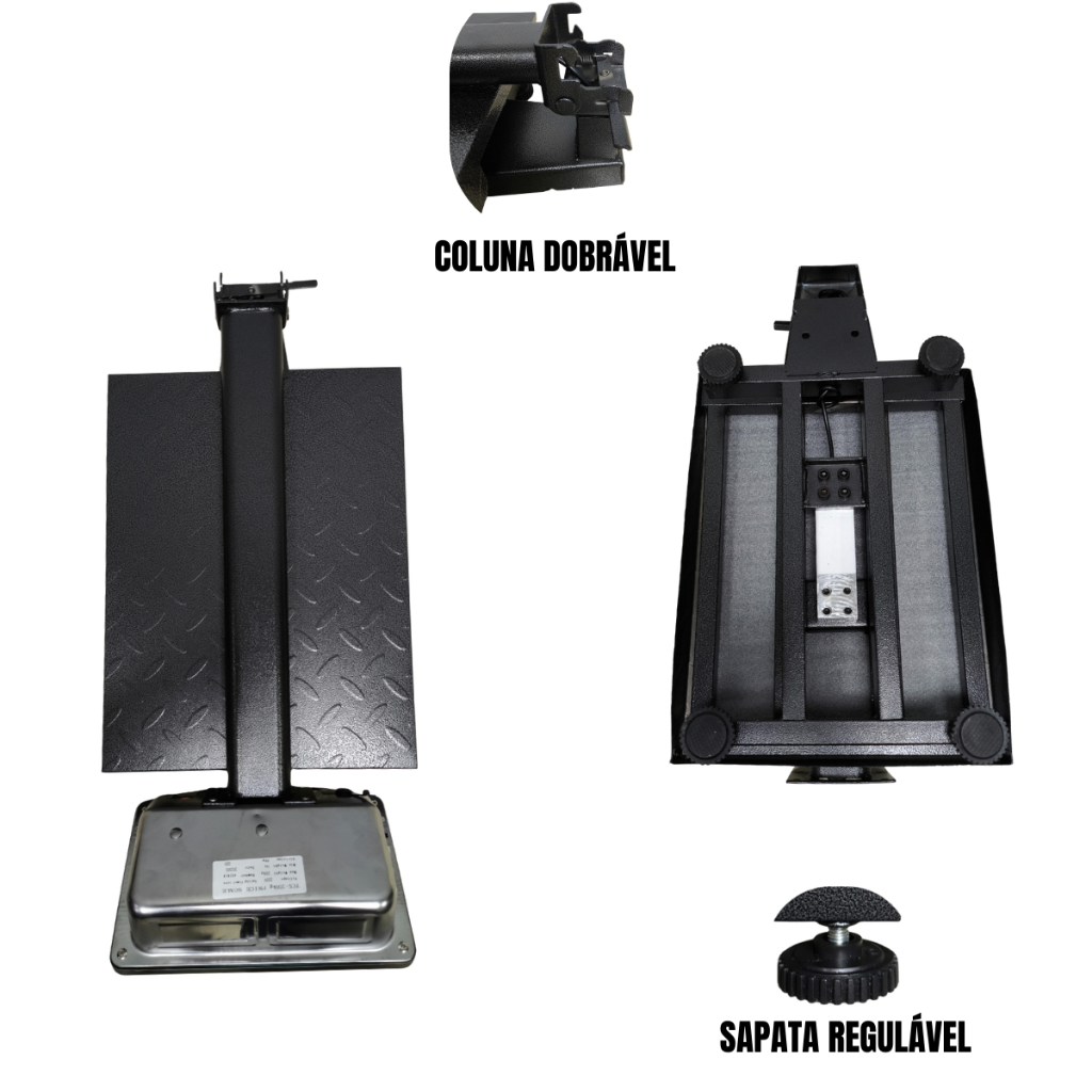 Balança Plataforma Digital 200kg 30x40cm ou 400kg 40x50cm Inox Mastro Dobrável Recarregável Bivolt