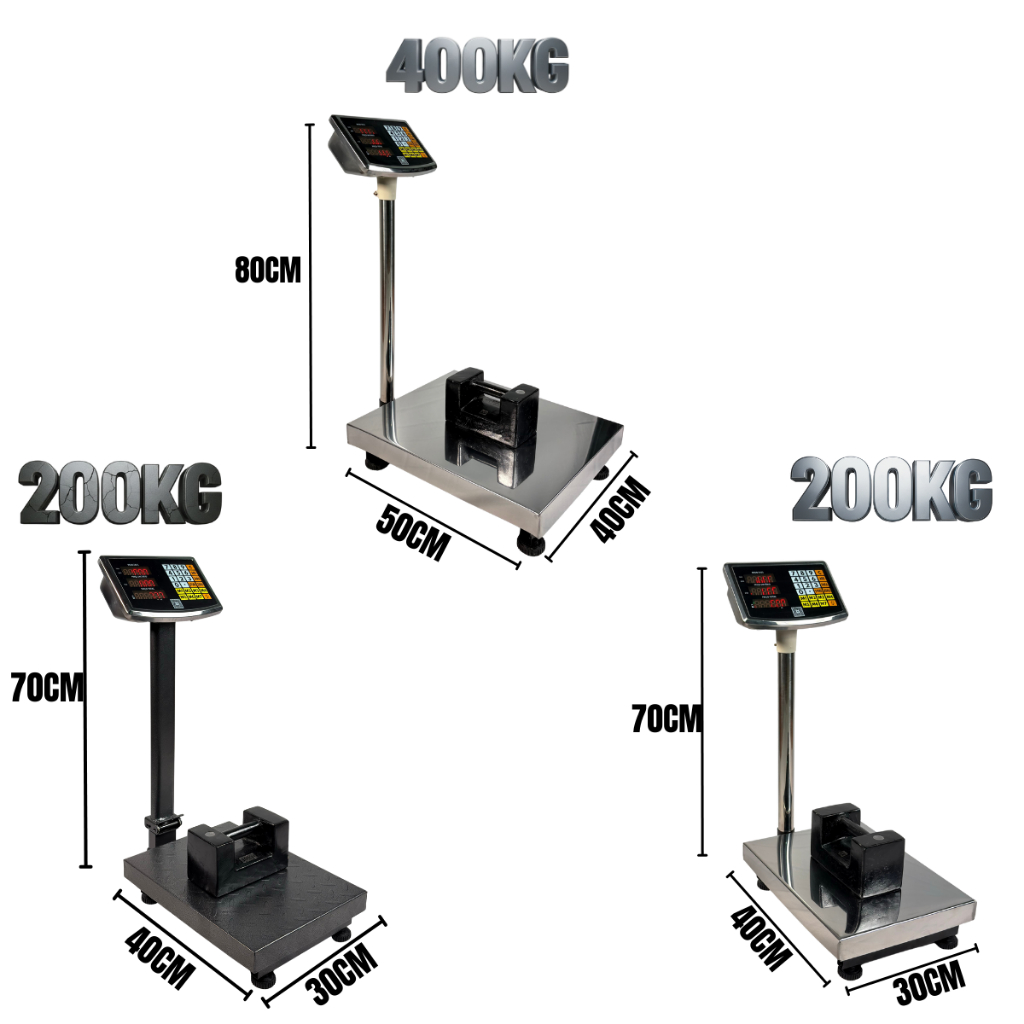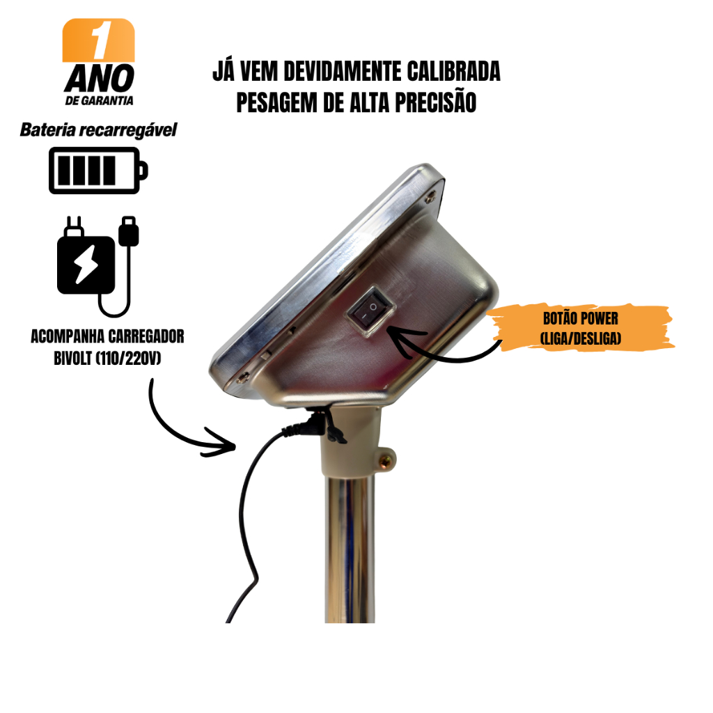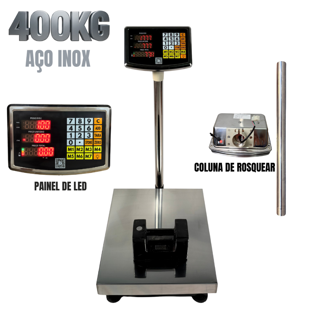 Balança Plataforma Digital 200kg 30x40cm ou 400kg 40x50cm Inox Mastro Dobrável Recarregável Bivolt