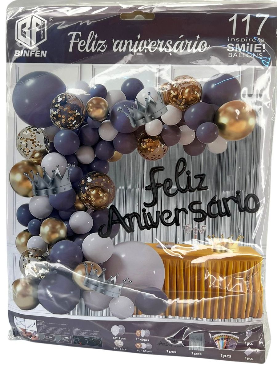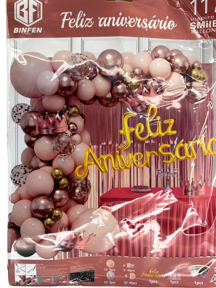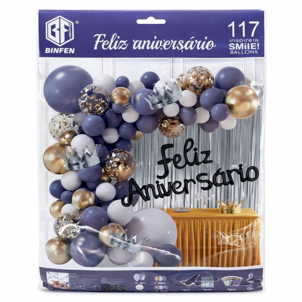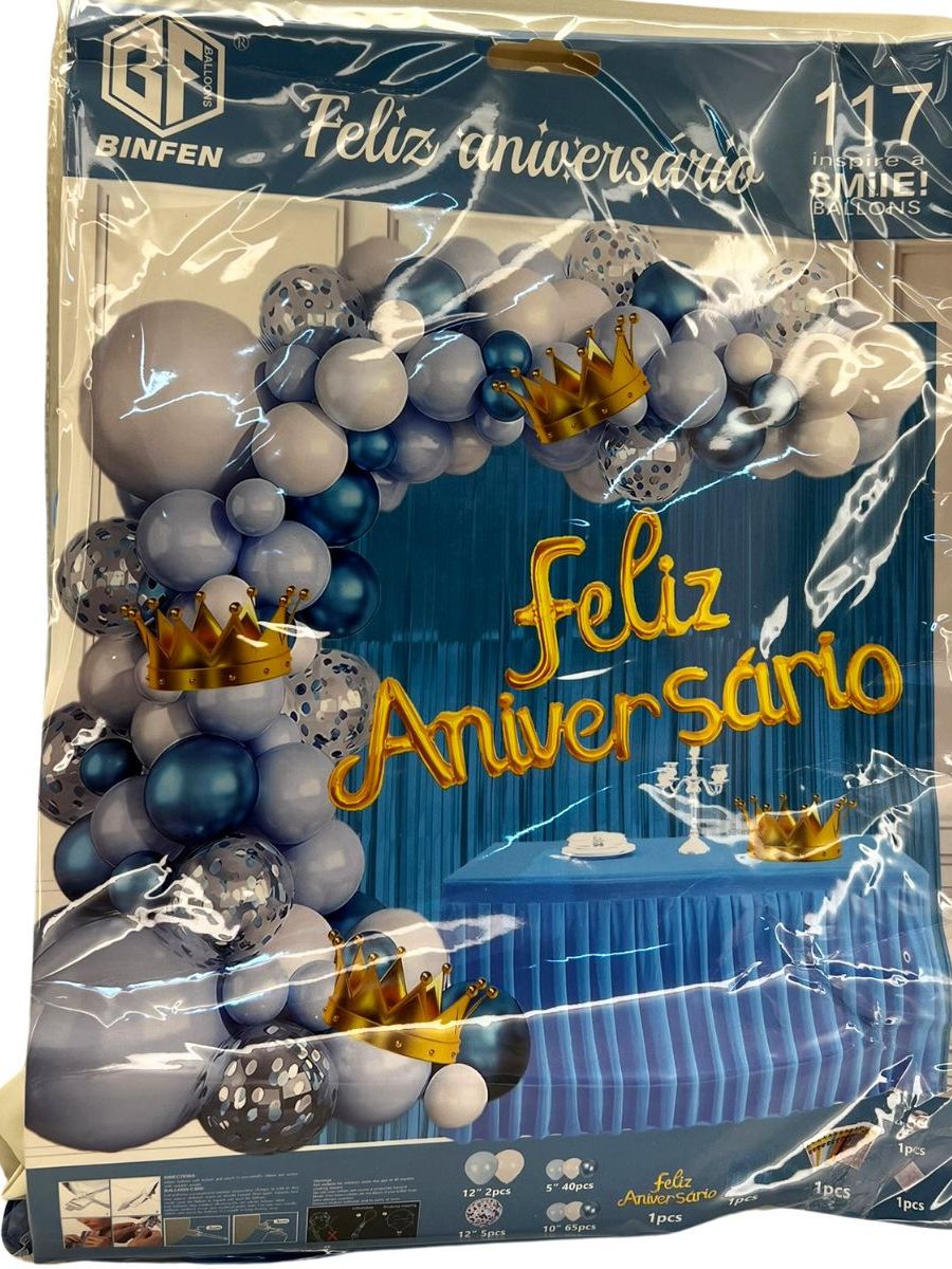 Balão Feliz Aniversário Kit com Cortina, tolha de mesa e Balões