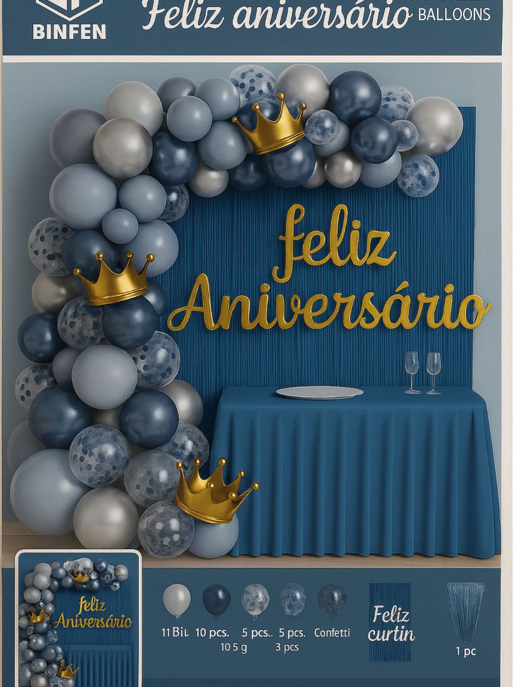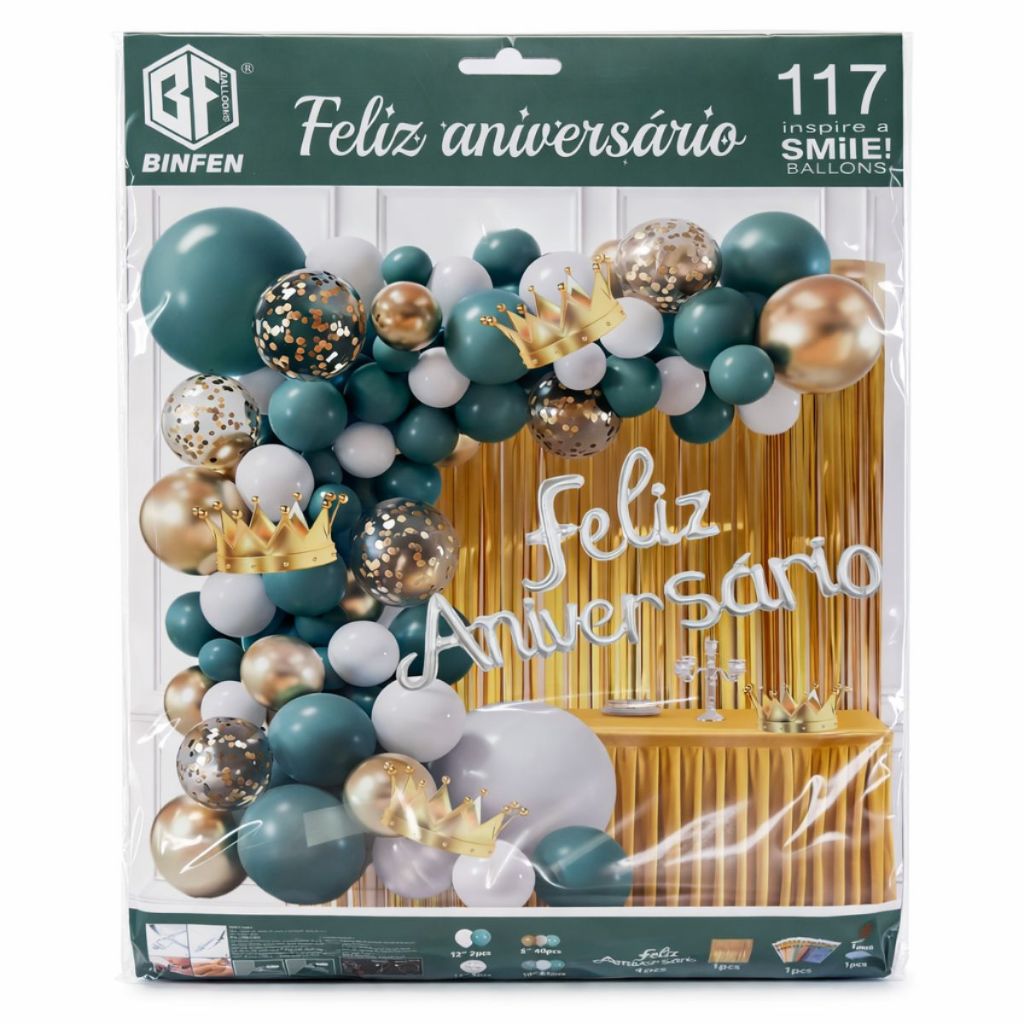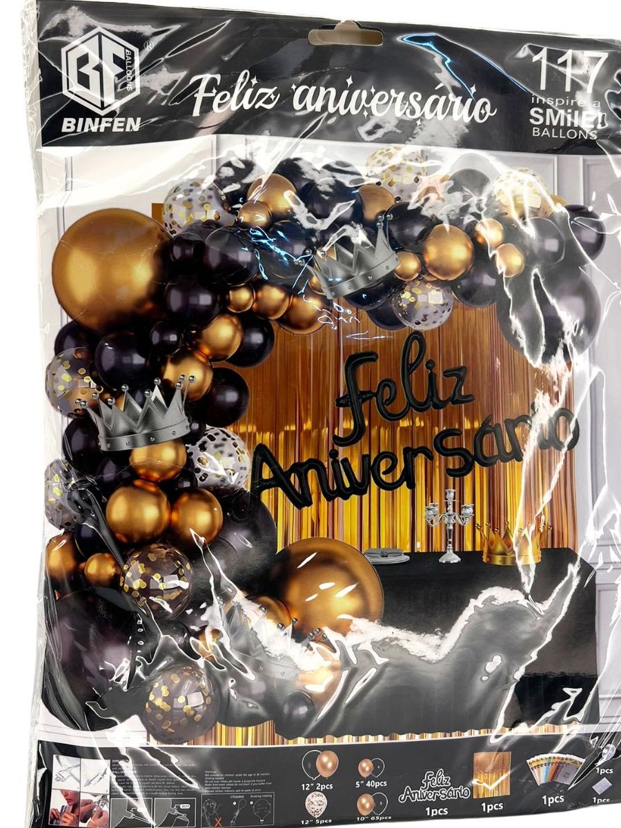 Balão Feliz Aniversário Kit com Cortina, tolha de mesa e Balões
