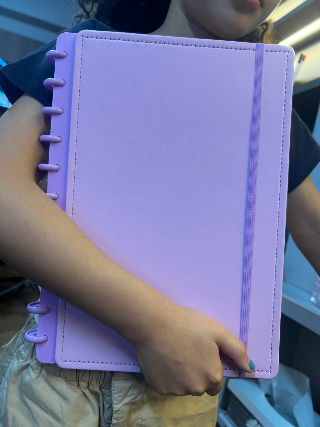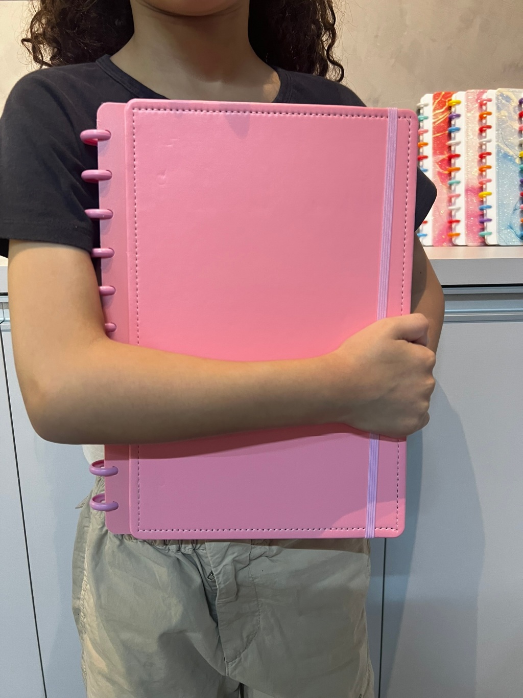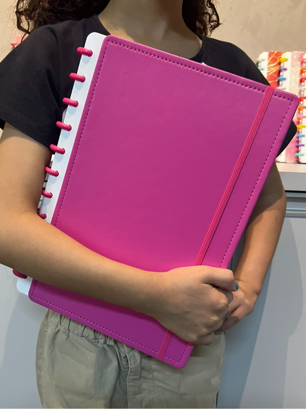 Caderno argolado capa dura de courino A4 80 folhas pautadas 11 discos