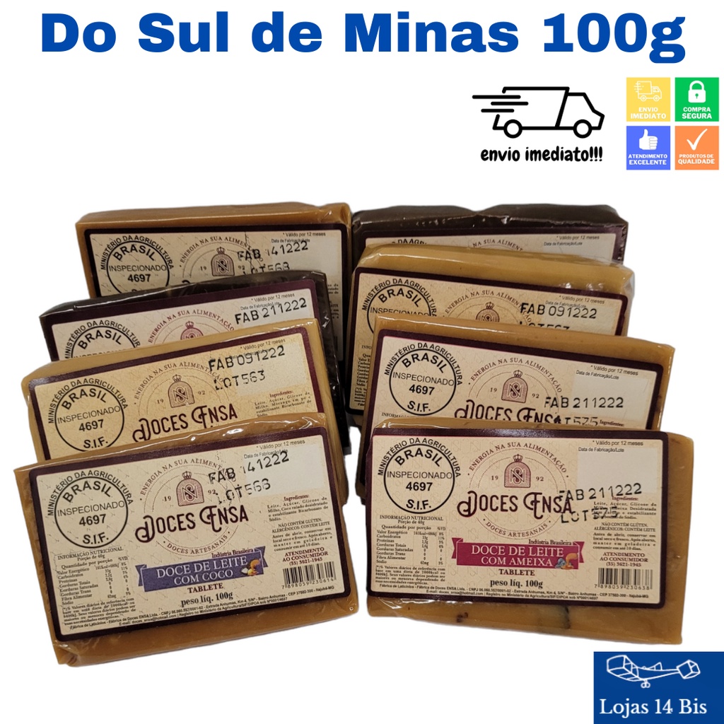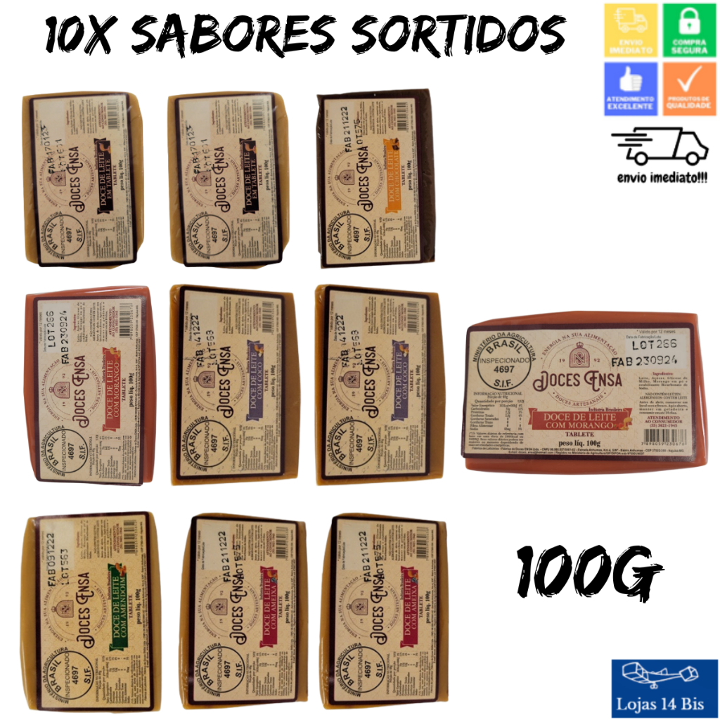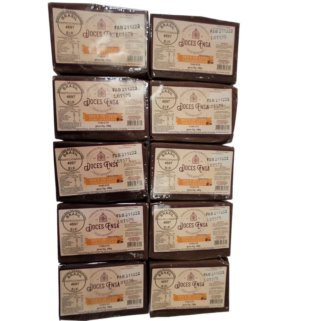 10 Barras Doce de Leite Ensa 100g Sabores Variados Sem Glúten Sul de Minas