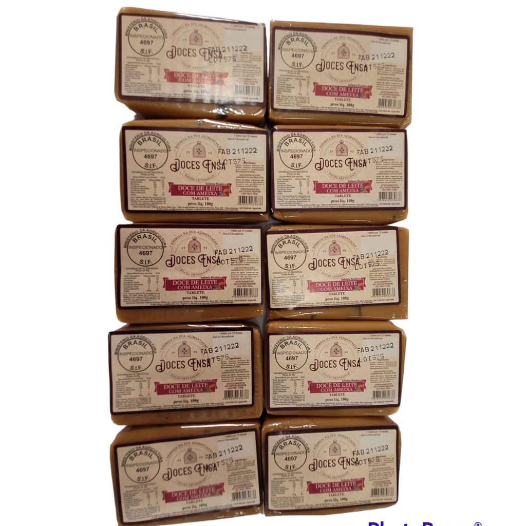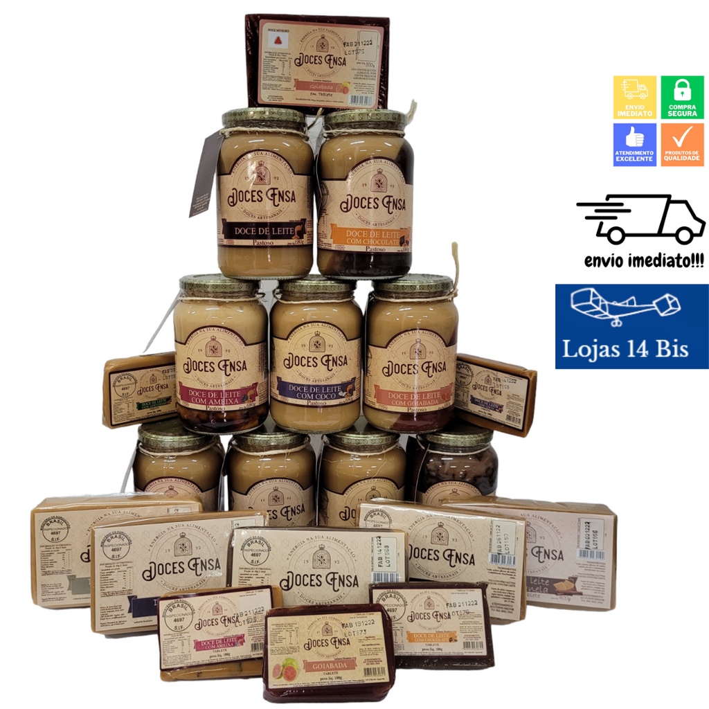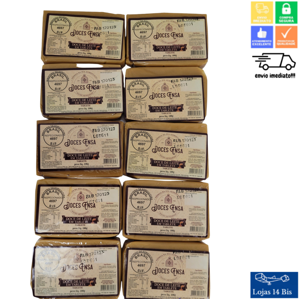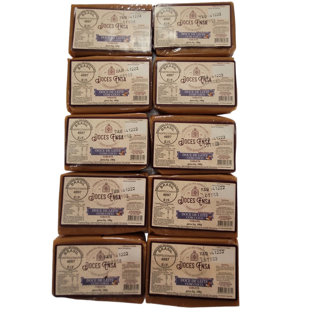 10 Barras Doce de Leite Ensa 100g Sabores Variados Sem Glúten Sul de Minas