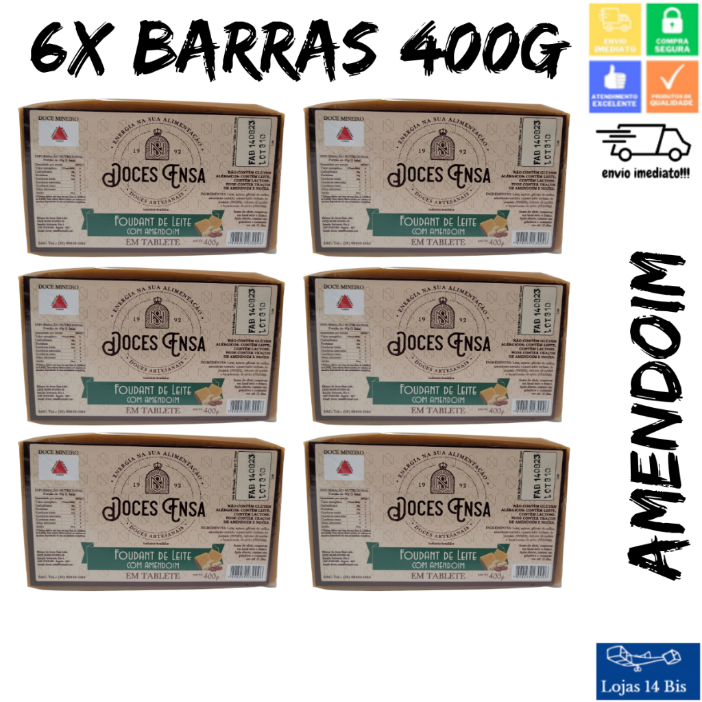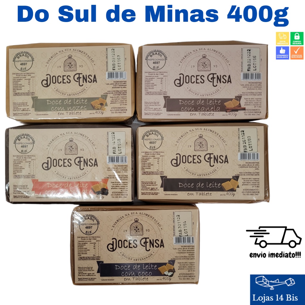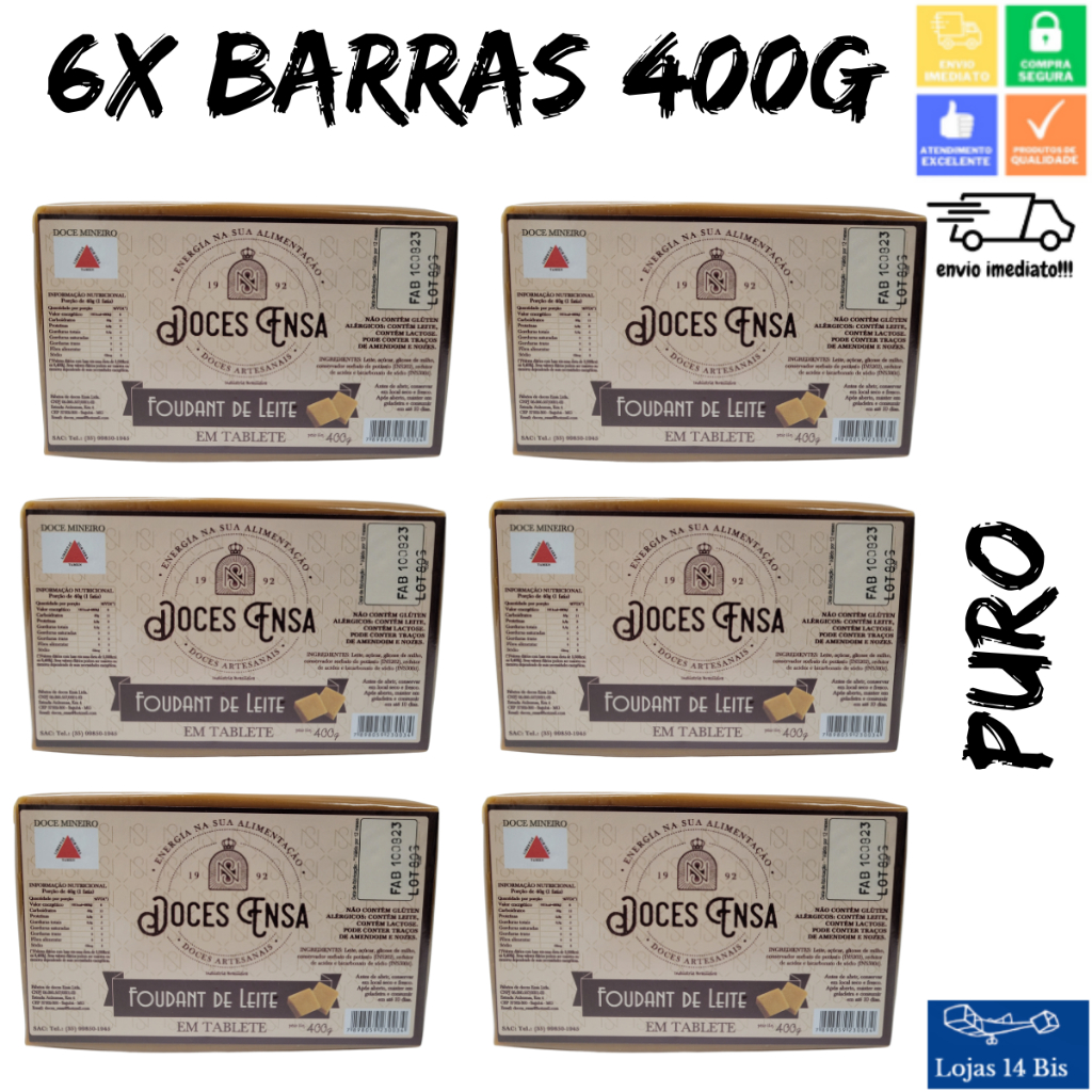 6 Doce de Leite Foundant Barras 400g Sabores Variados Sem Glúten Ensa Sul de Minas