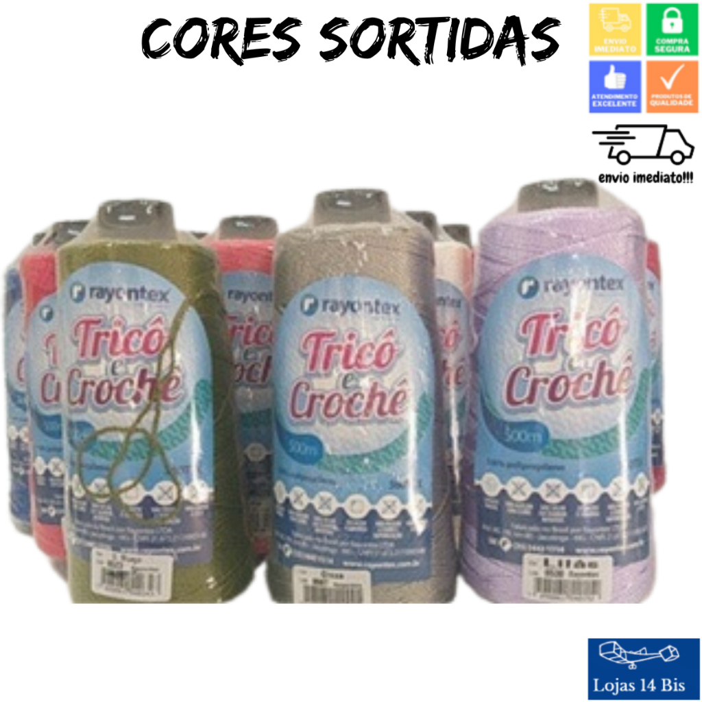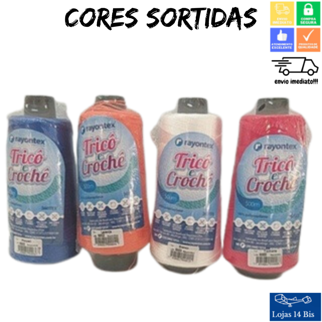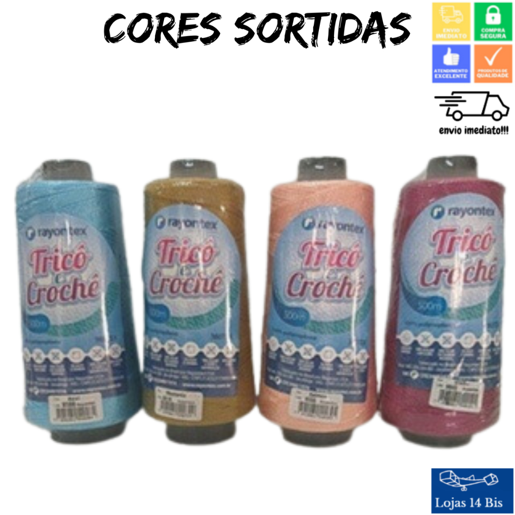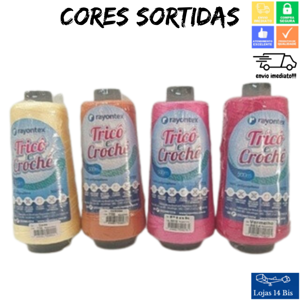 15 Cones de Linha para Tricô Crochê Rayontex Artesanato Roupas Trancas Tererê 500m 100g TEX360 Cores Sortidas