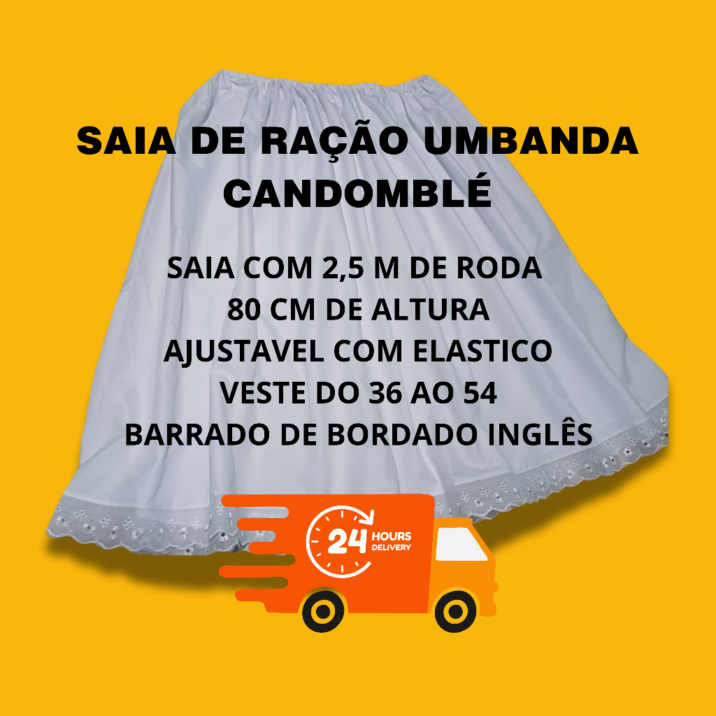 ROUPA RELIGIOSA SAIA DE UMBANDA E CANDOMBLÉ BRANCA SAIA DE RAÇÃO TECIDO MICROPERCAL 85CM 2,5 DE RODA
