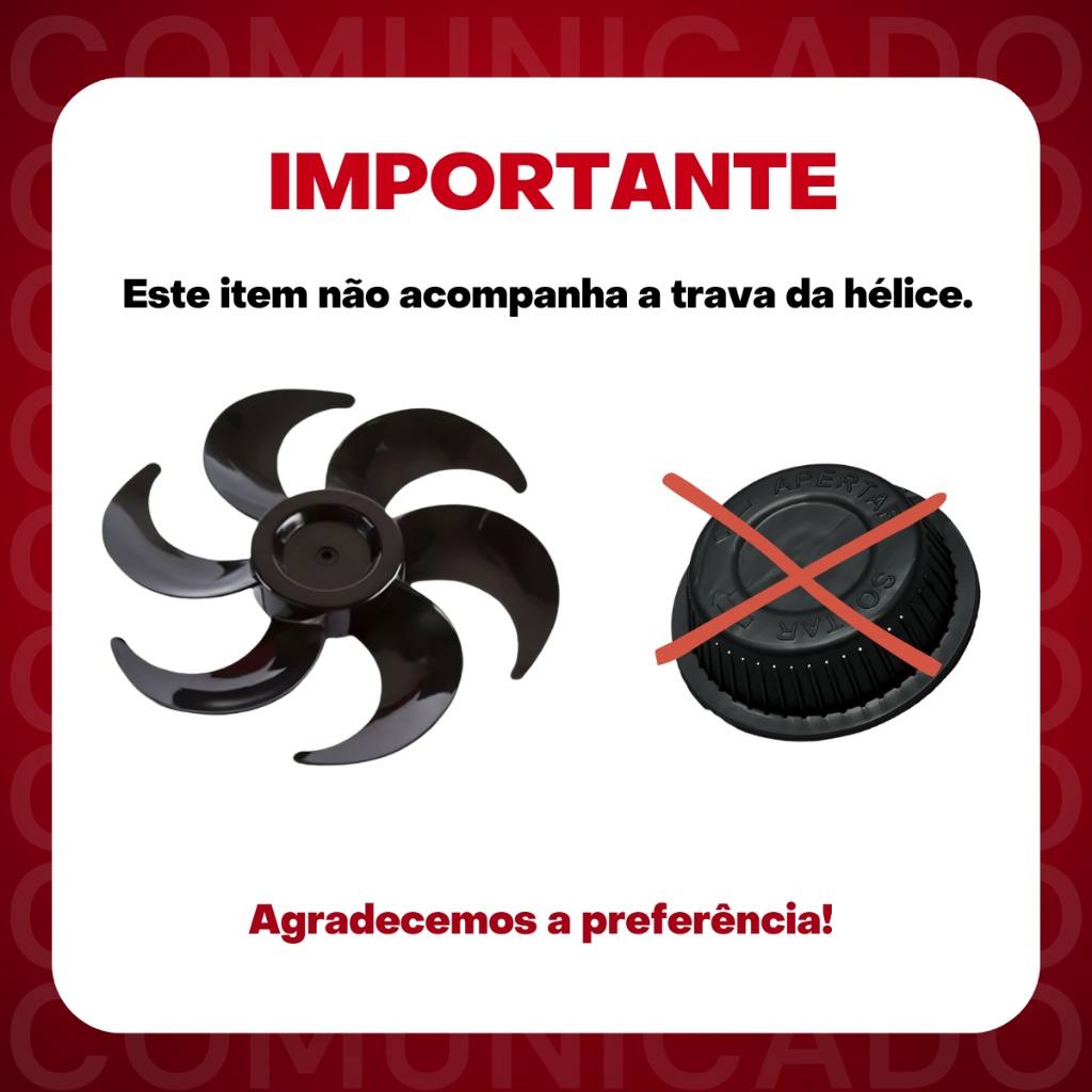 Hélice Serve Para Ventilador Britânia Turbo BVT480 BVT481 BVT491 8 Pás 40cm
