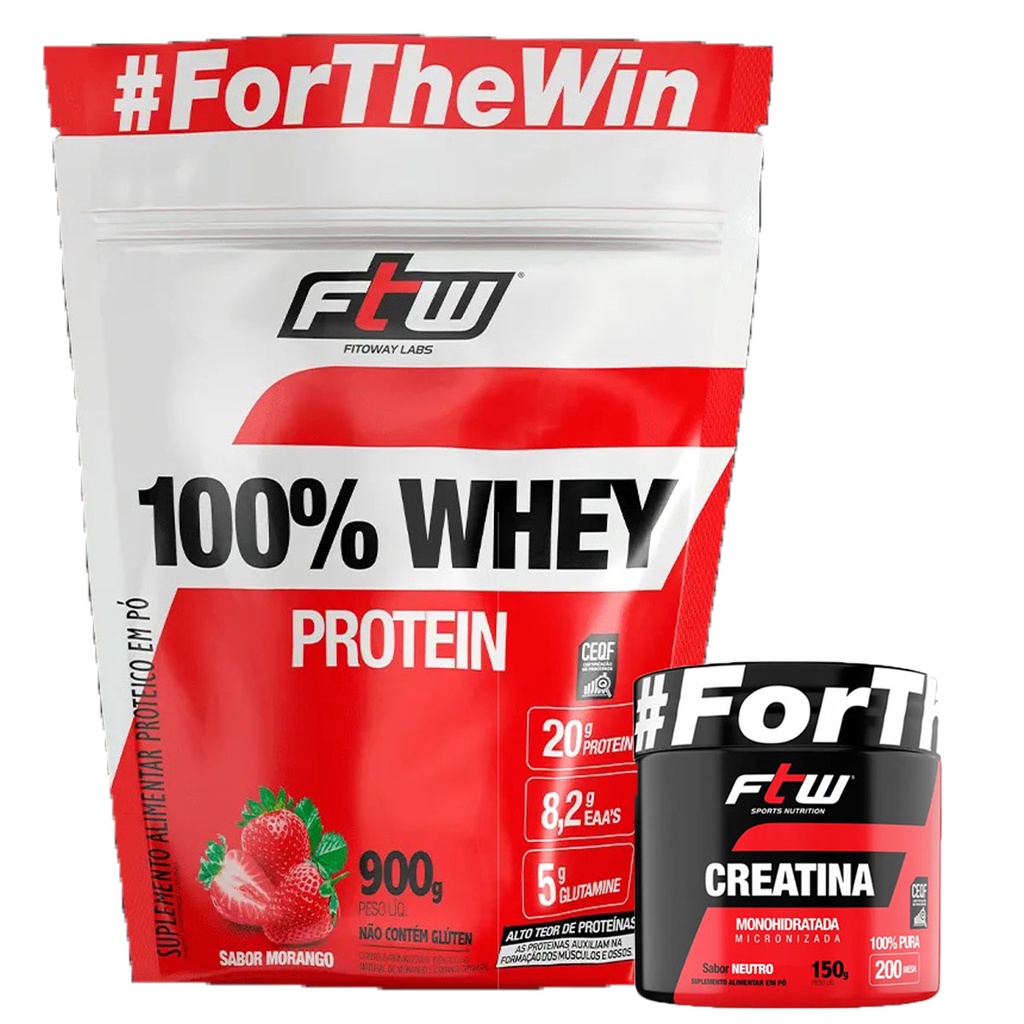 Kit 100% Whey Protein Refil 900g + Creatina Monohidratada 100% Pura Pote 150g - FTW