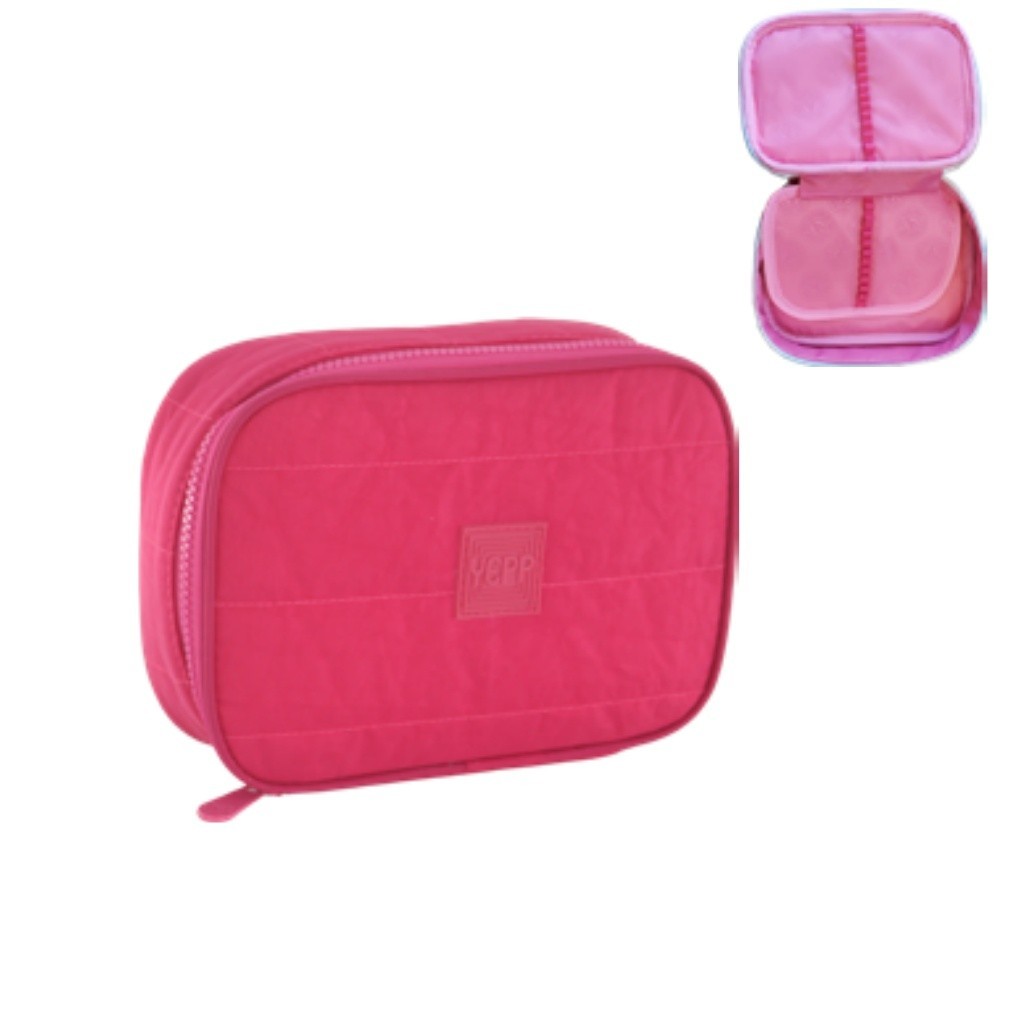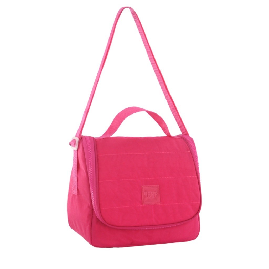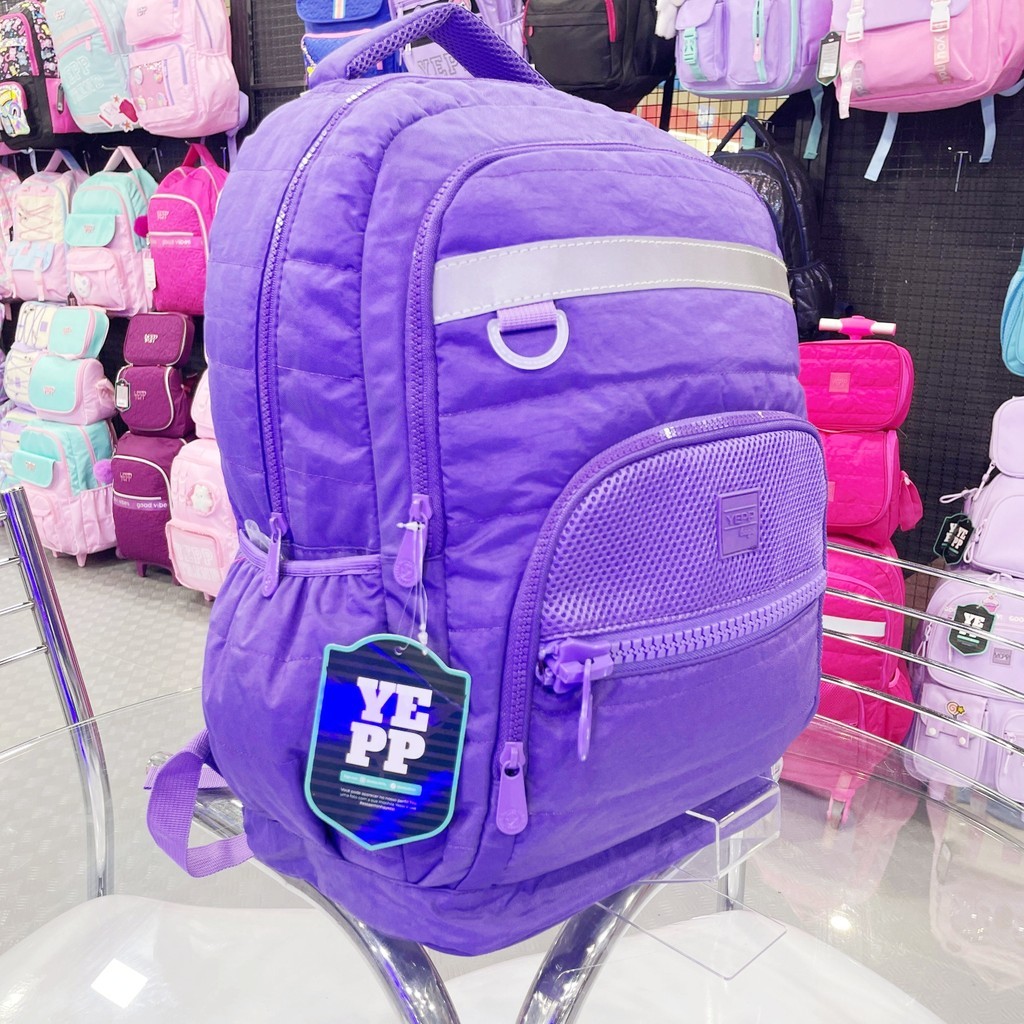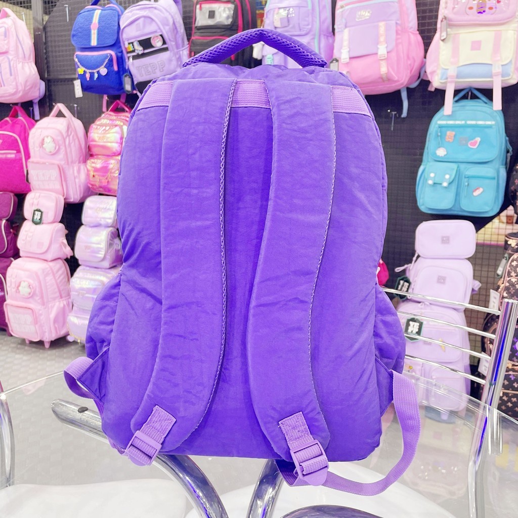 KIT de Mochila Grande Juvenil Estilosa Cor Pink Roxo Desenho do tecido Matelassê Lancheira Térmica e Estojo