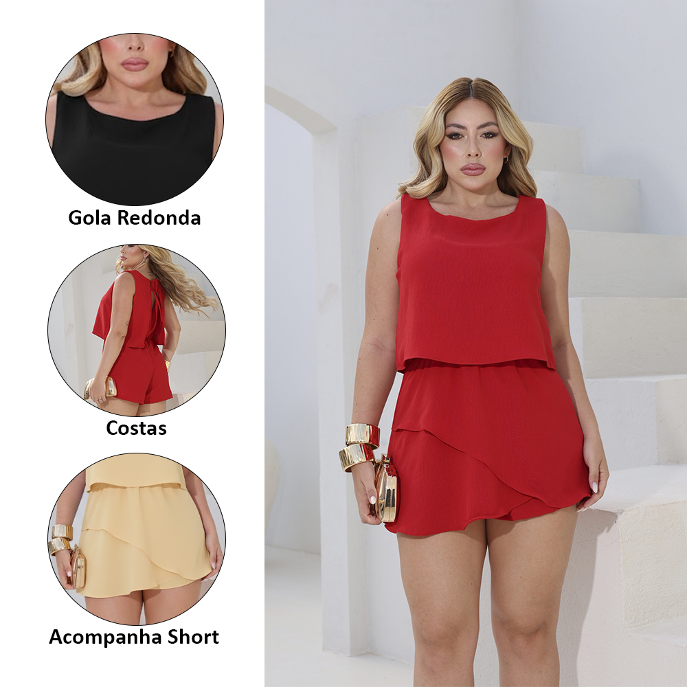 Macaquinho Ayla, no tecido duna com camadas é amarração nas costas