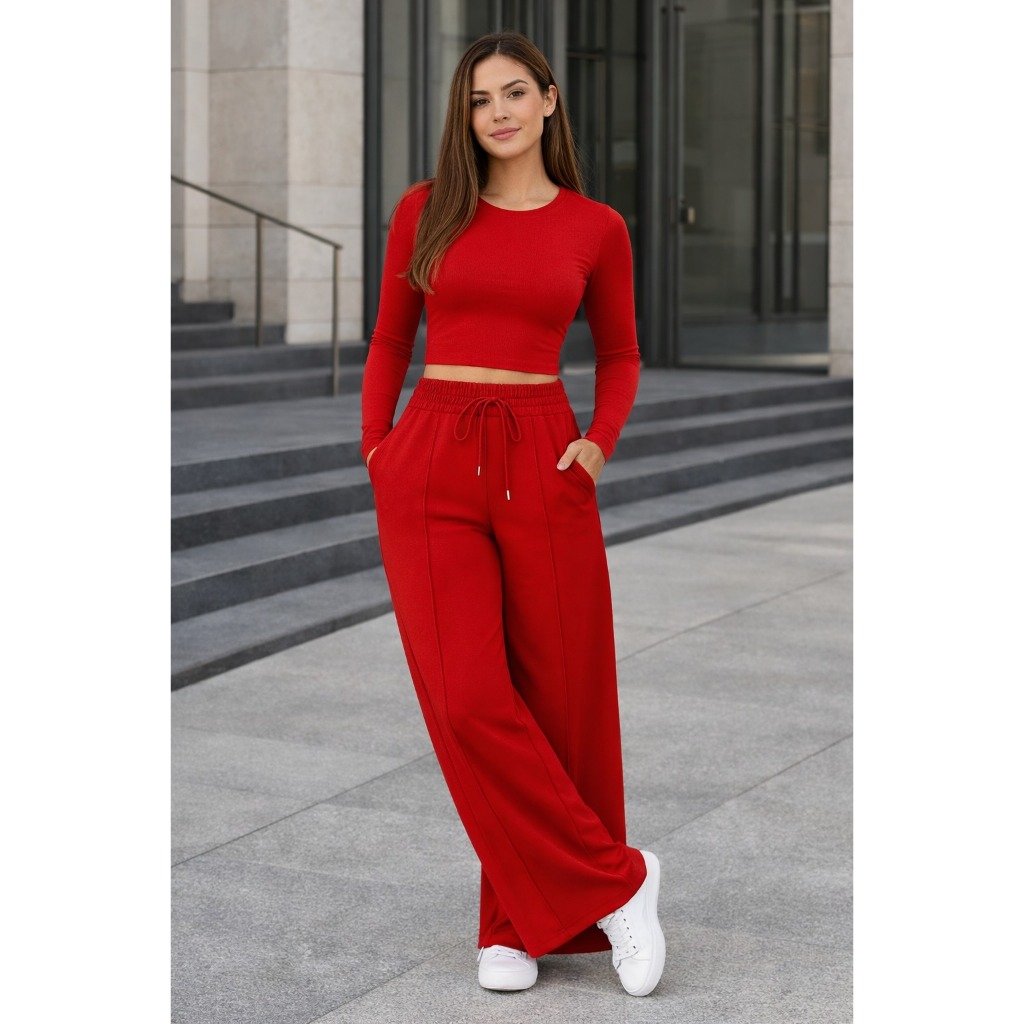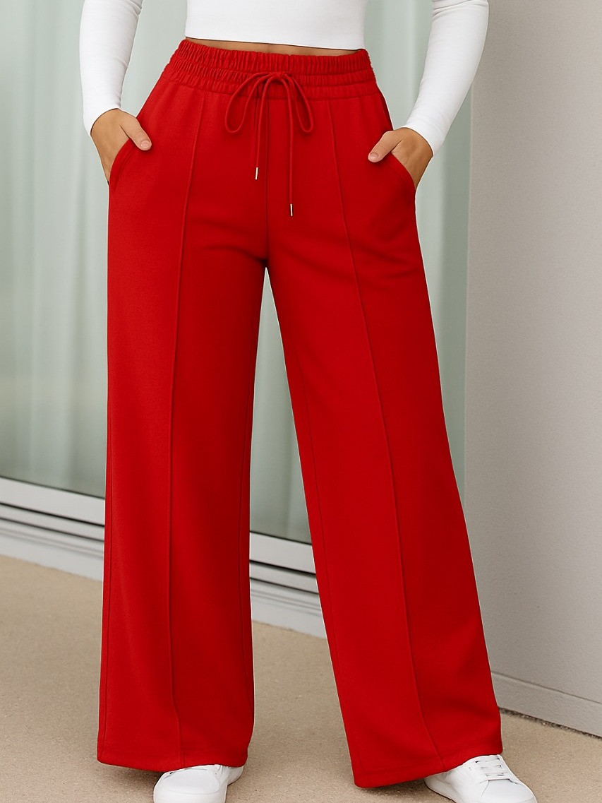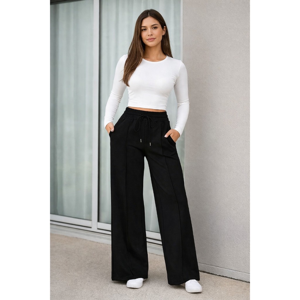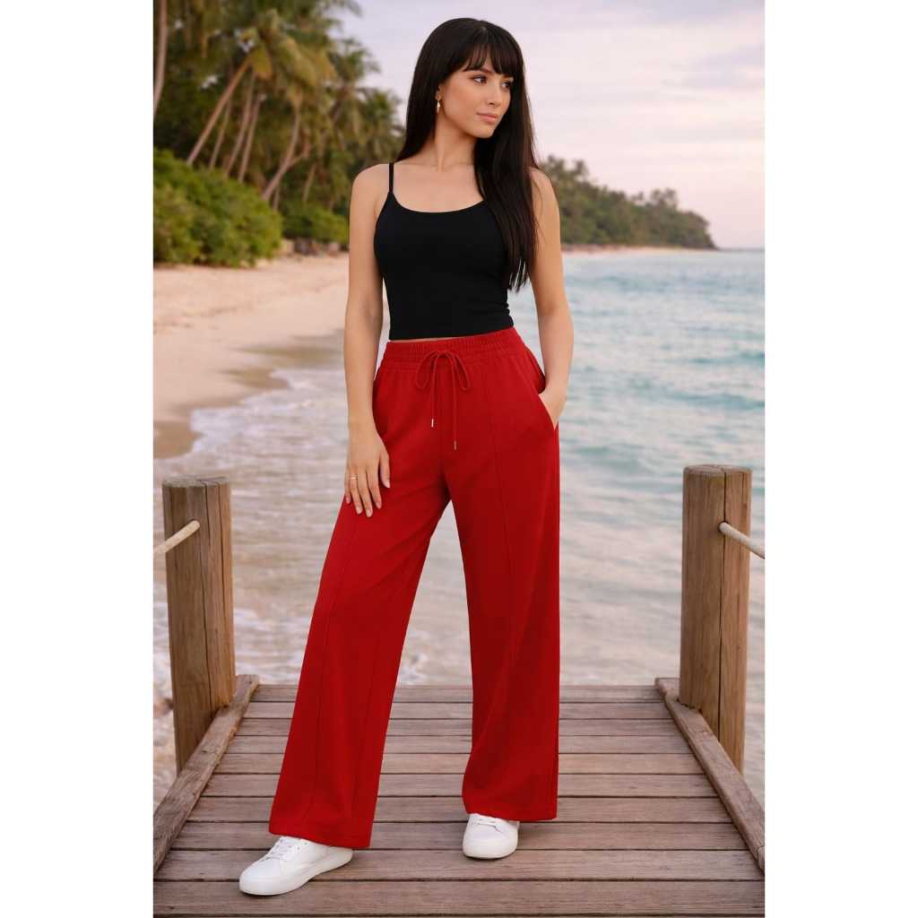 Calça Feminina Pantalona Wide Leg Duna com Bolso Cintura Alta Tendência