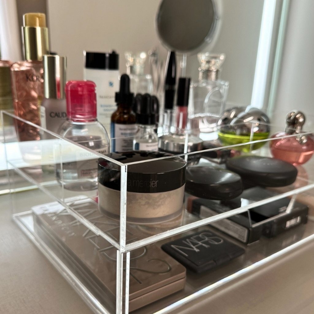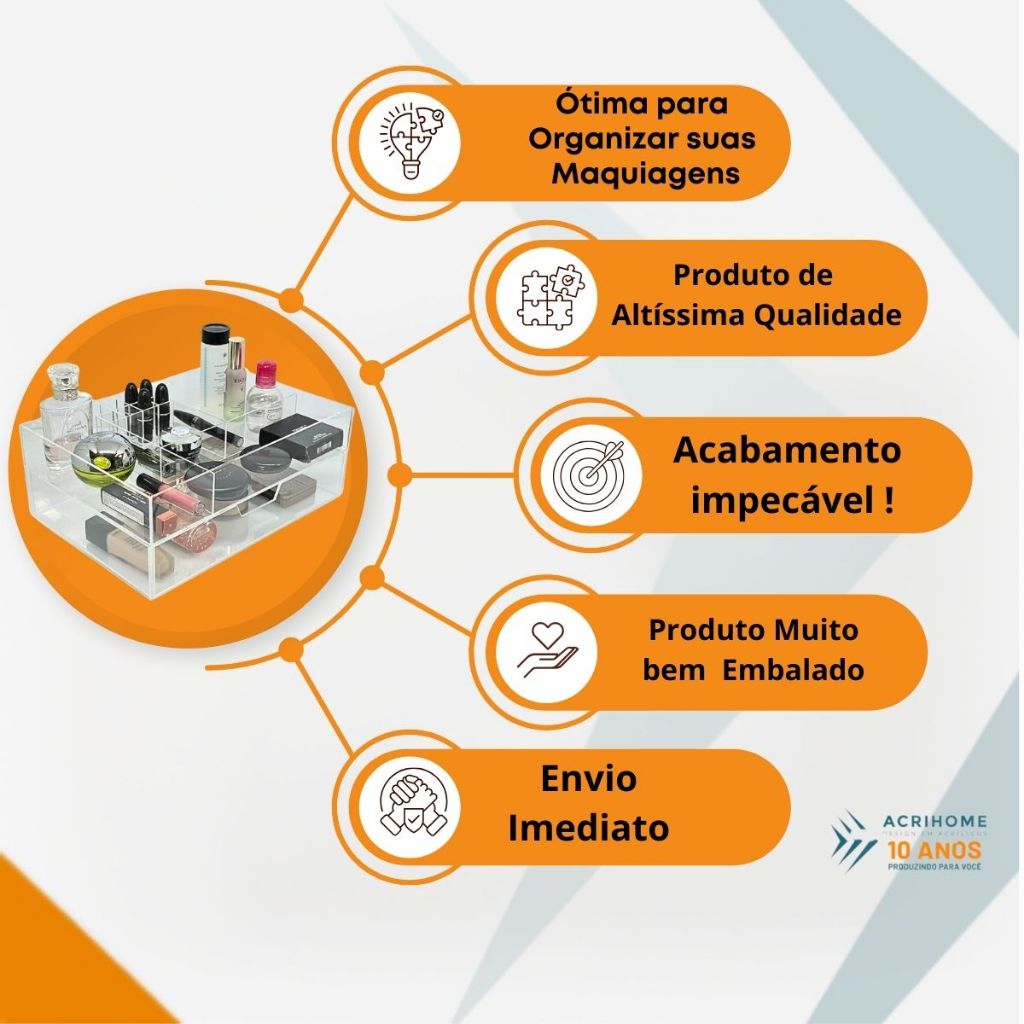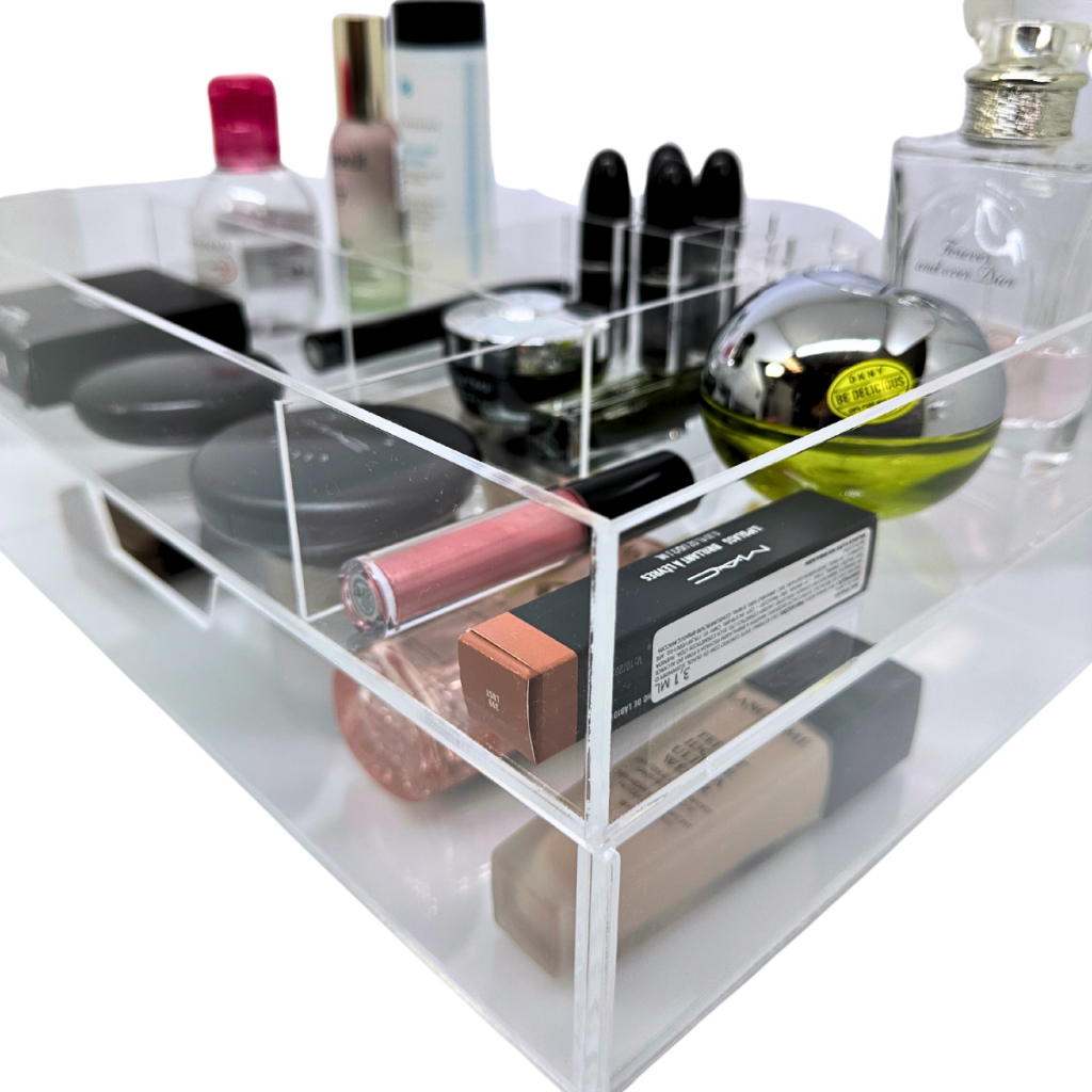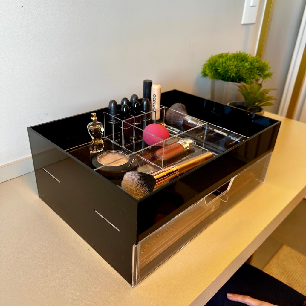 Organizador Caixa Porta Maquiagem em Acrílico com divisórias internas e Gaveta Transparente