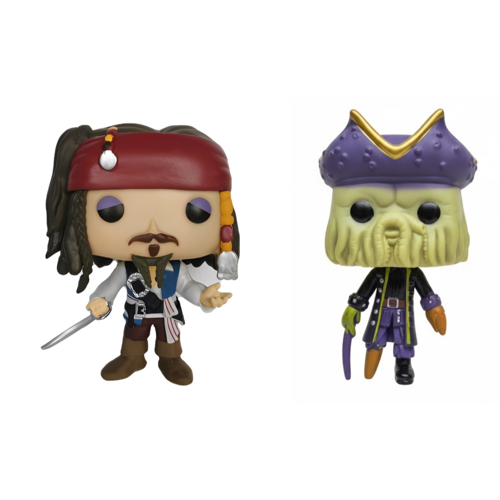 Bonecos Colecionáveis Piratas do Caribe - Capitão Jack Sparrow, Hector Barbossa, Elizabeth Swann, Davy Jones.