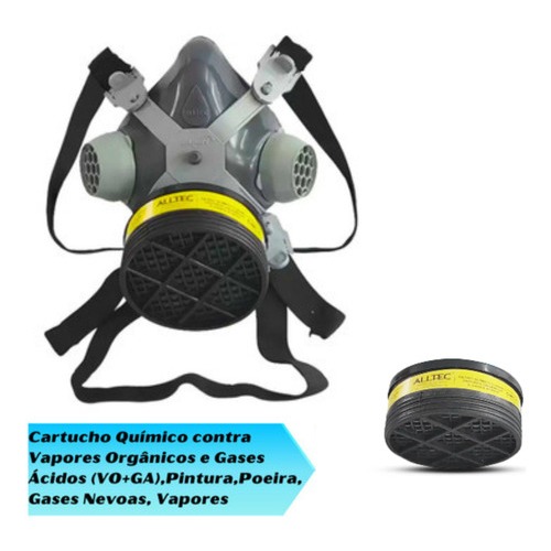 MÁSCARA RESPIRADOR ALLTEC 2001/DESTRA MIG-11 VO+GA COM FILTRO PARA RESINAS PINTURAS GASES NEVOAS POEIRA VAPORES