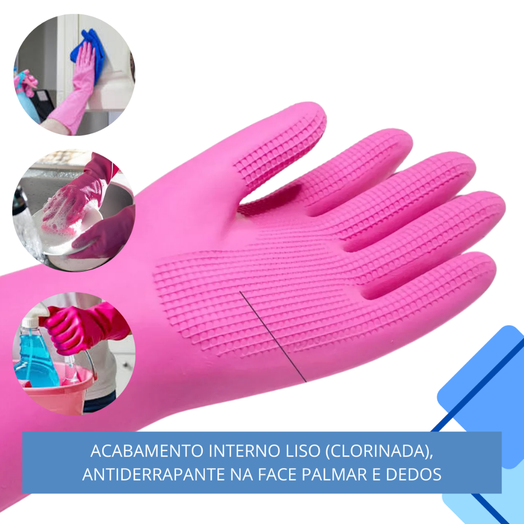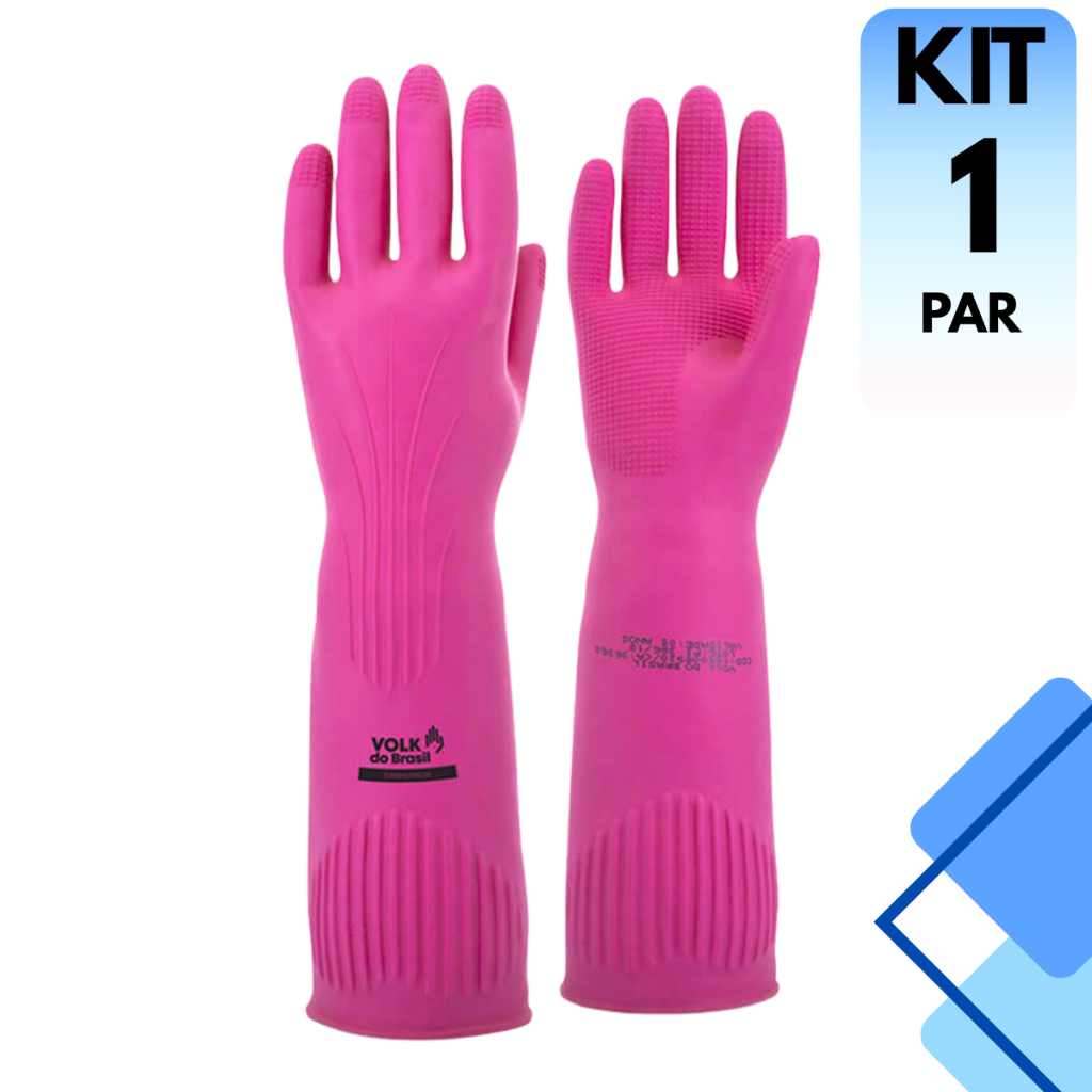 LUVA DE LATEX VOLK RANHURADA ROSA MULTIUSO IMPERMEAVEL ANTIDERRAPANTE PARA COZINHA LIMPEZA LOUÇA