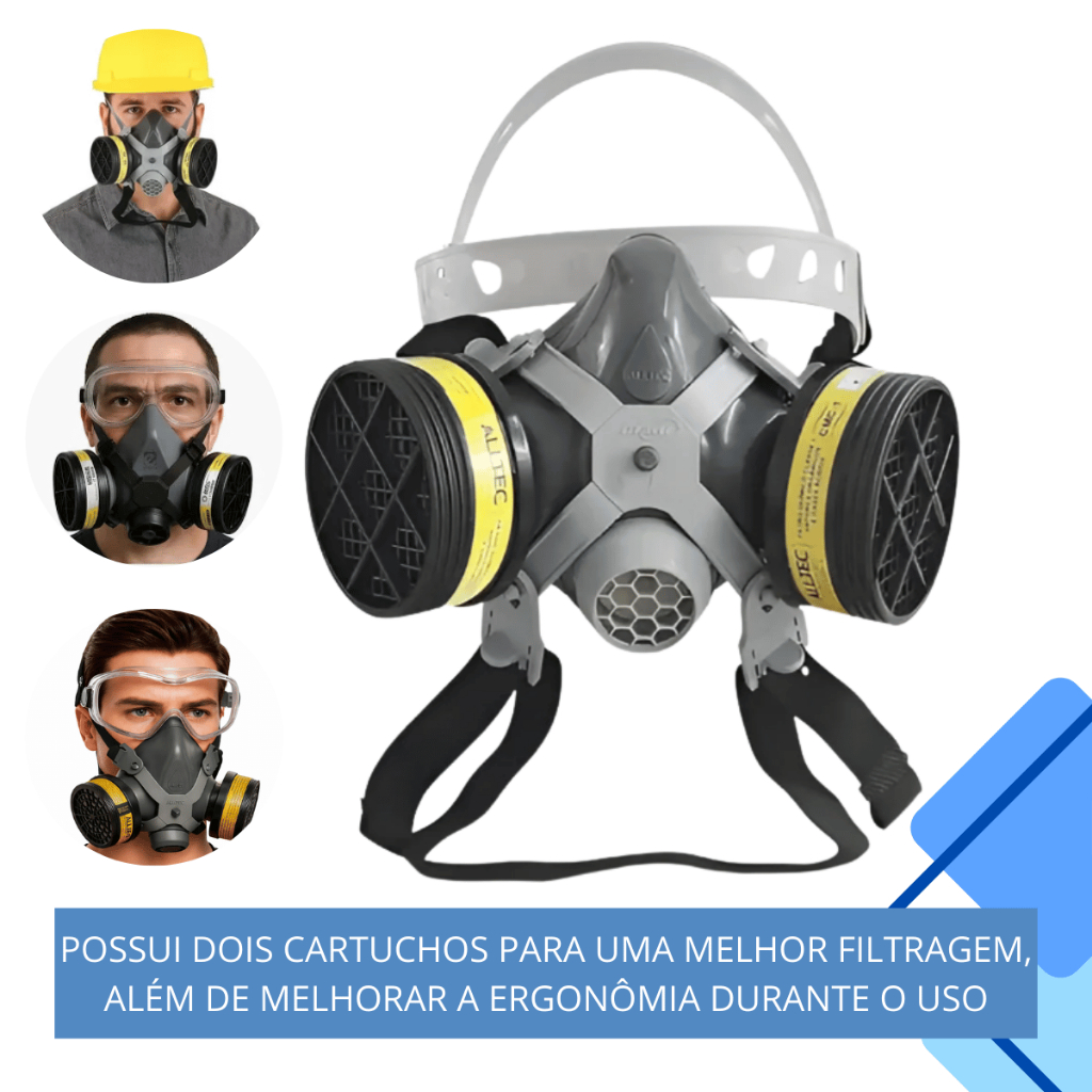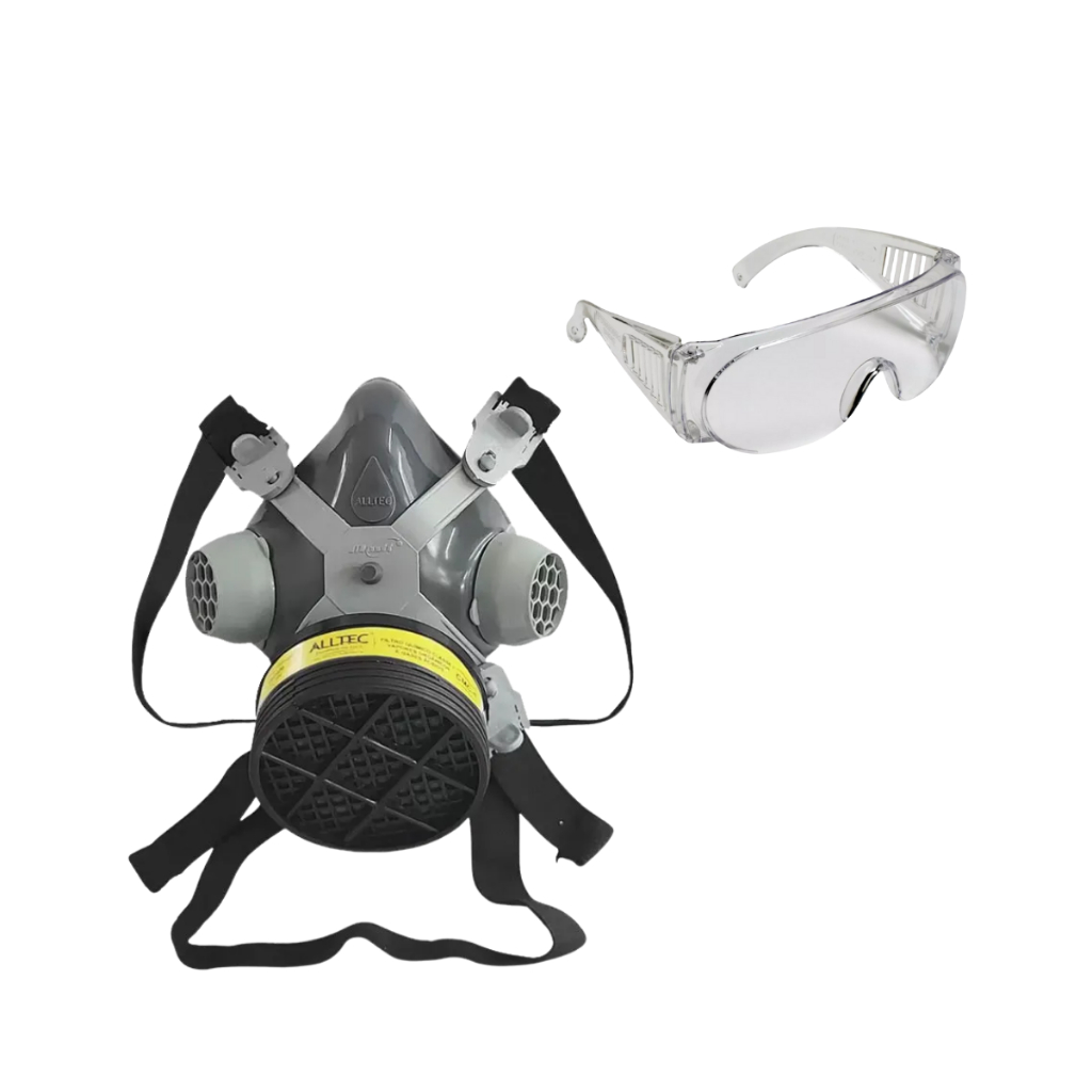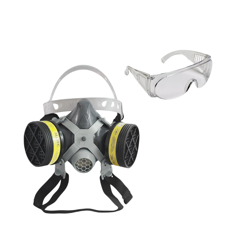 RESPIRADOR 2002 OU 2001 + 2 FILTROS QUÍMICO VO+GA E OCULOS DE PROTEÇÃO INCOLOR PINTURA RESINAS PÓ