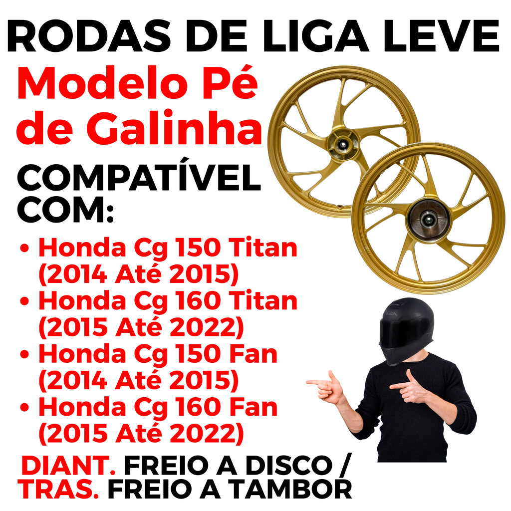 Jogo Roda Cg 160 Titan Fan 2015 Até 2022 Dourada Pé de Galinha
