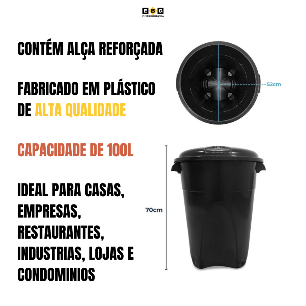 Lixeira Preta Cesto De Lixo Grande Cozinha 100 Litros Reforçado Cor Preto