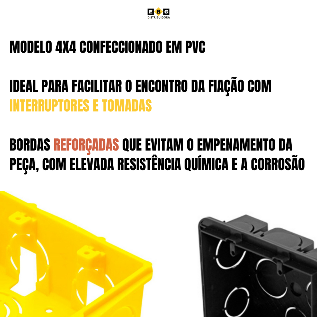 Kit 10 Caixa De Luz 4x4 Reforçada Amarelo Ou Preta Elétrica Parede Luz