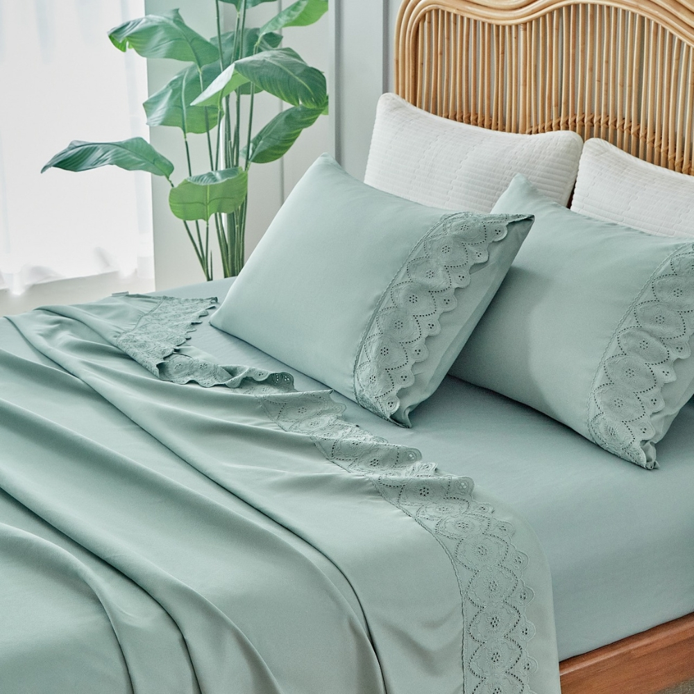 Jogo Lençol Queen Ellie 4Pç Percal 300 Fios Bordado