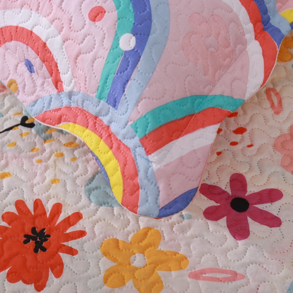 Kit Colcha Cobre Leito Solteiro 2 Pçs Infantil - Rainbow Flowers