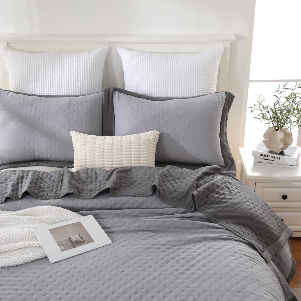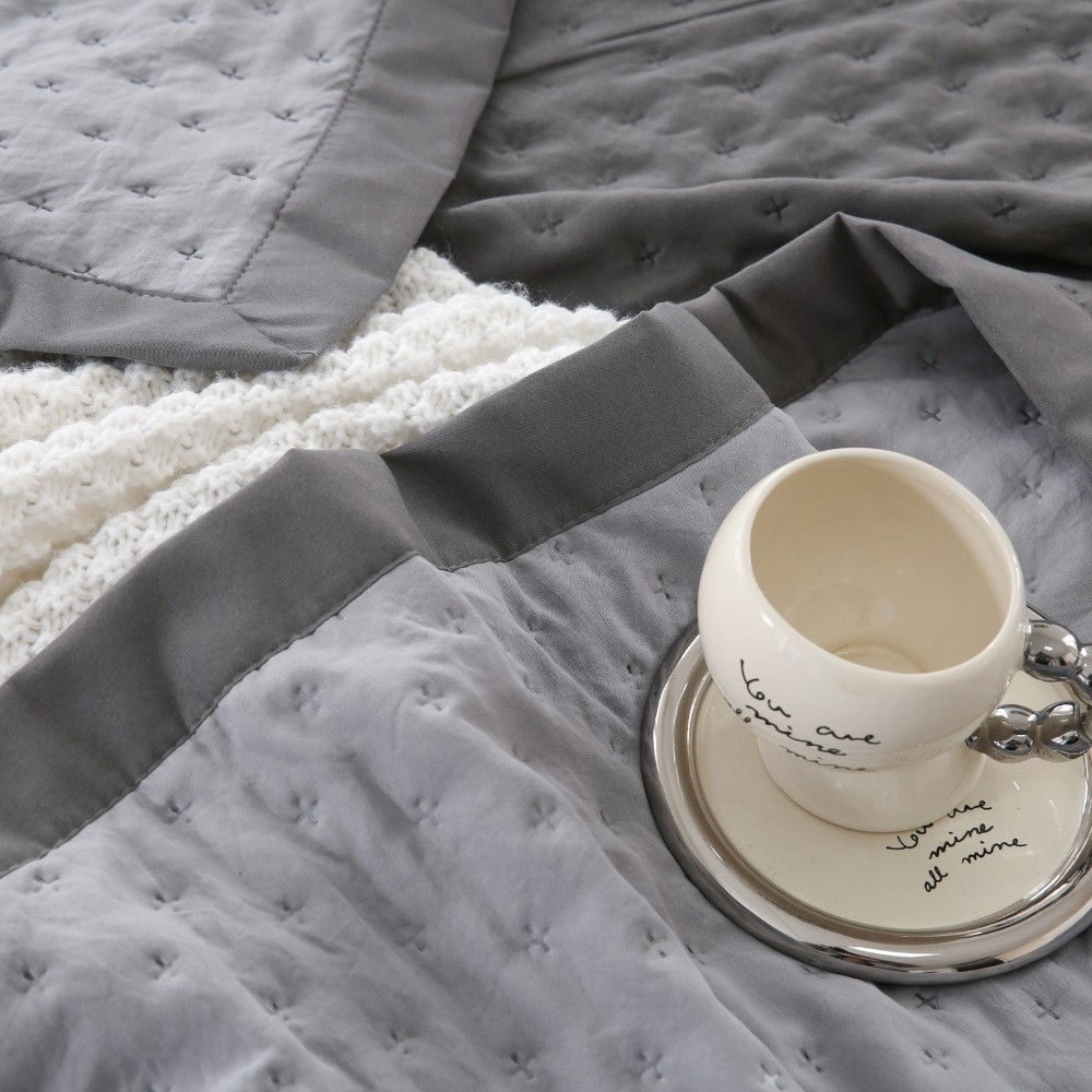 Kit Cobre Leito Colcha Queen Paris Bicolor Percal 300 fios Silver