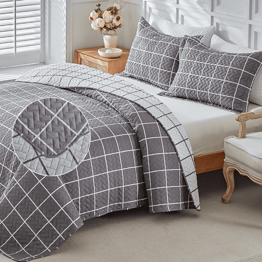 Kit Colcha Solteiro 2 Peças Itália 150 Fios Grid Dupla Face