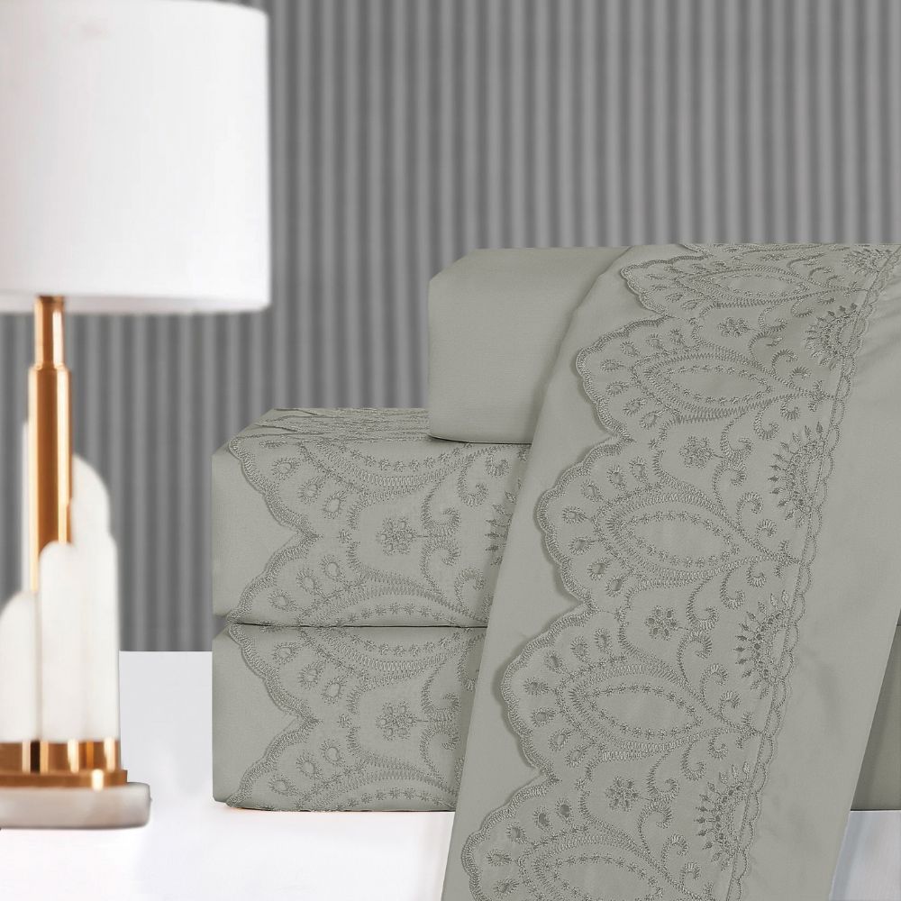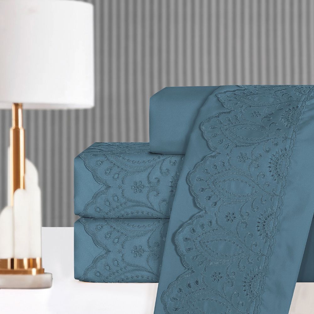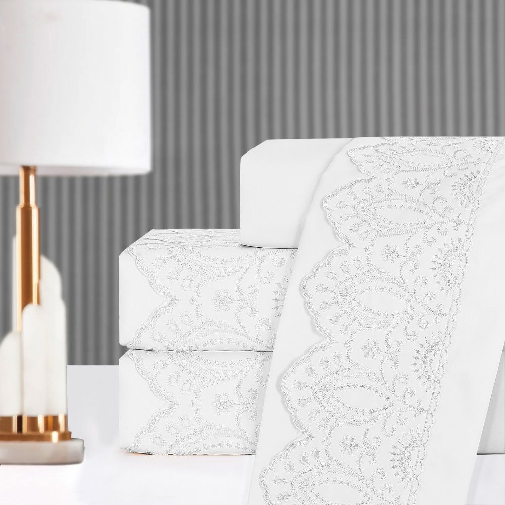 Jogo de Lençol Solteiro Casal Queen King 3 Peças Veneza Percal 300 Fios Lese Bordado Inglês