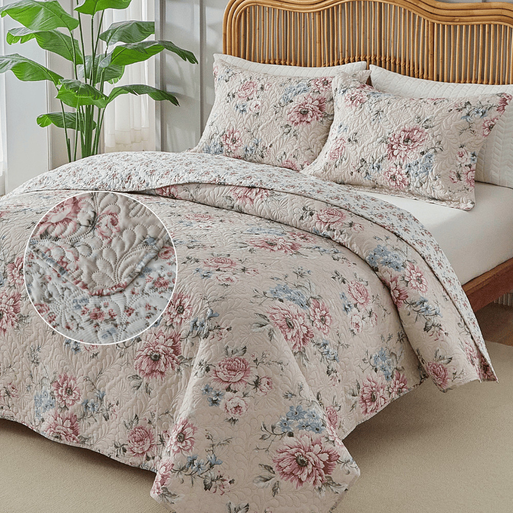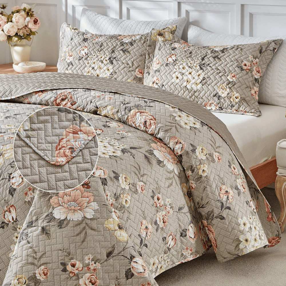 Kit Colcha Cobre Leito 3 Peças Itália Estampado Dupla Face Aba Americana King Queen Casal Solteiro