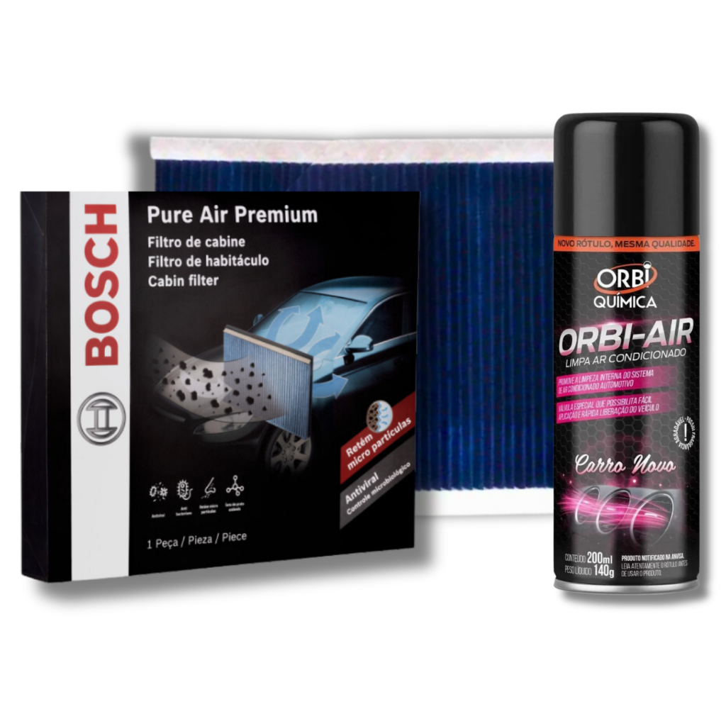 Filtro Carvão Ativado Ar Condicionado Cabine Antiviral Premium Carro Bosch + Spray Higienizador