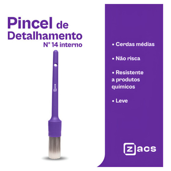 Pincel Uso Interno Zacs No 14 Suave Detalhamento Automotivo