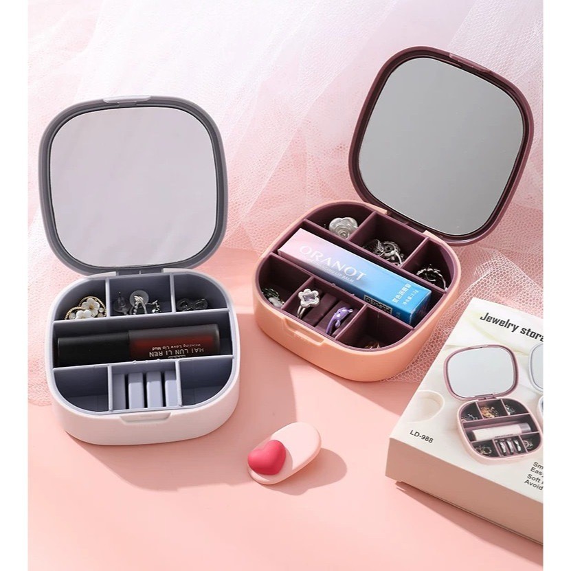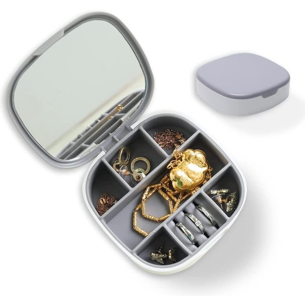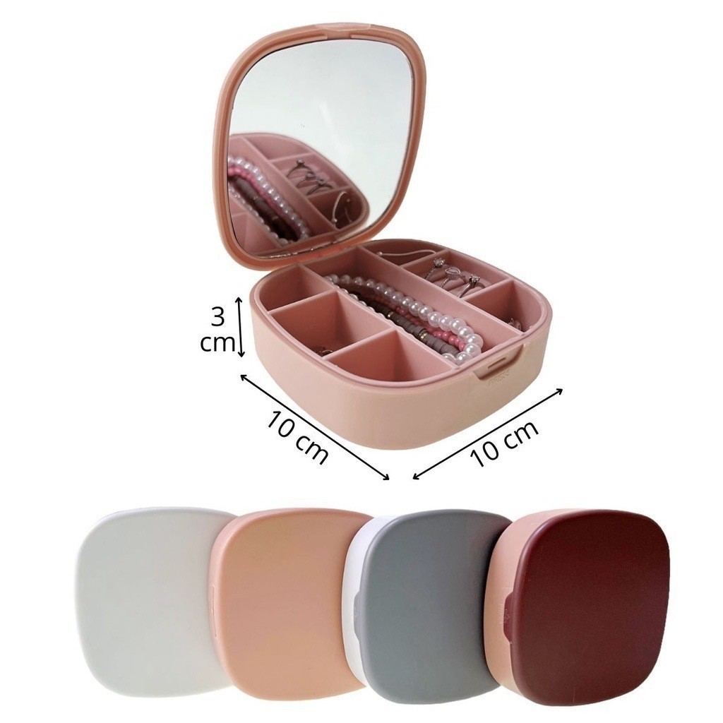 Porta Joias Com Espelho Viagem Portátil Estojo Maleta Caixa Tampa Aliança Bijuteria Organizador Brincos Bijuteria