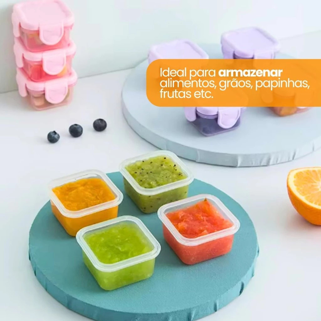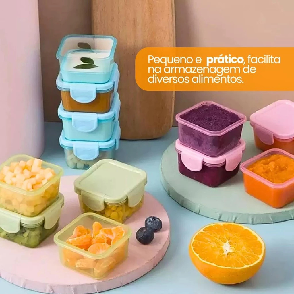 Kit c1/2/4 Mini Potes para Congelar Papinha c/ Tampa Hermética Porta Leita em pó Frutas para Bebe adultos