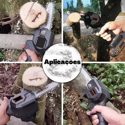 Mini Serra Motosserra Elétrica Portátil Bateria Recarregável Cor Preto 110V/220V