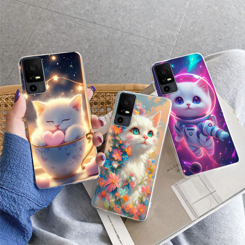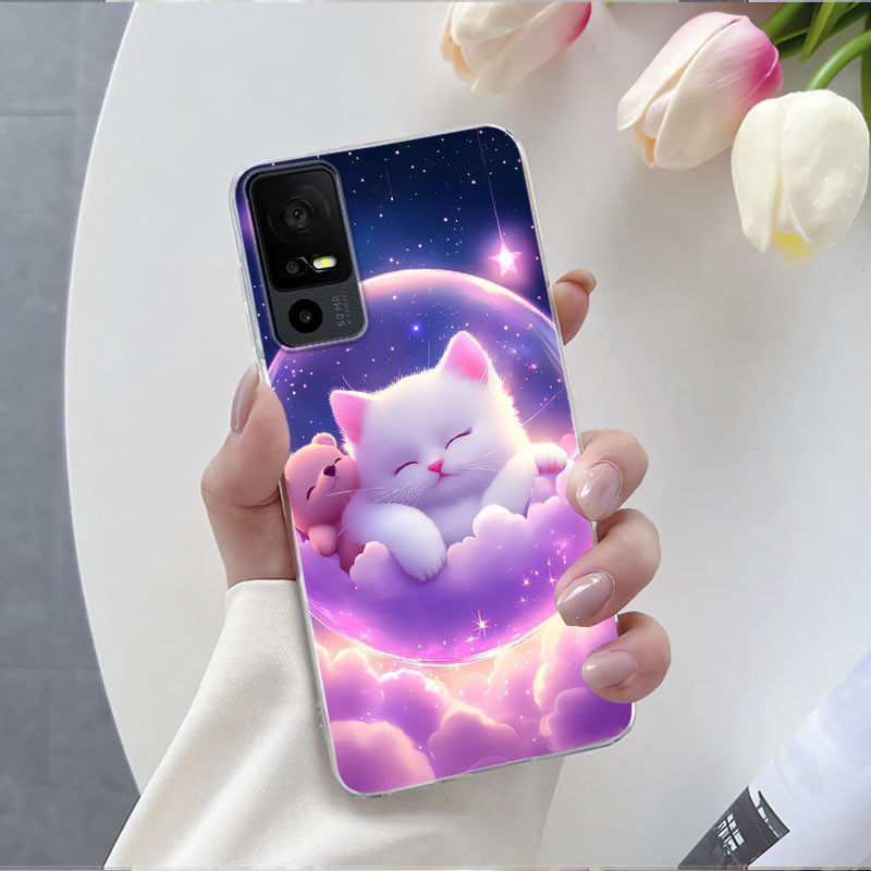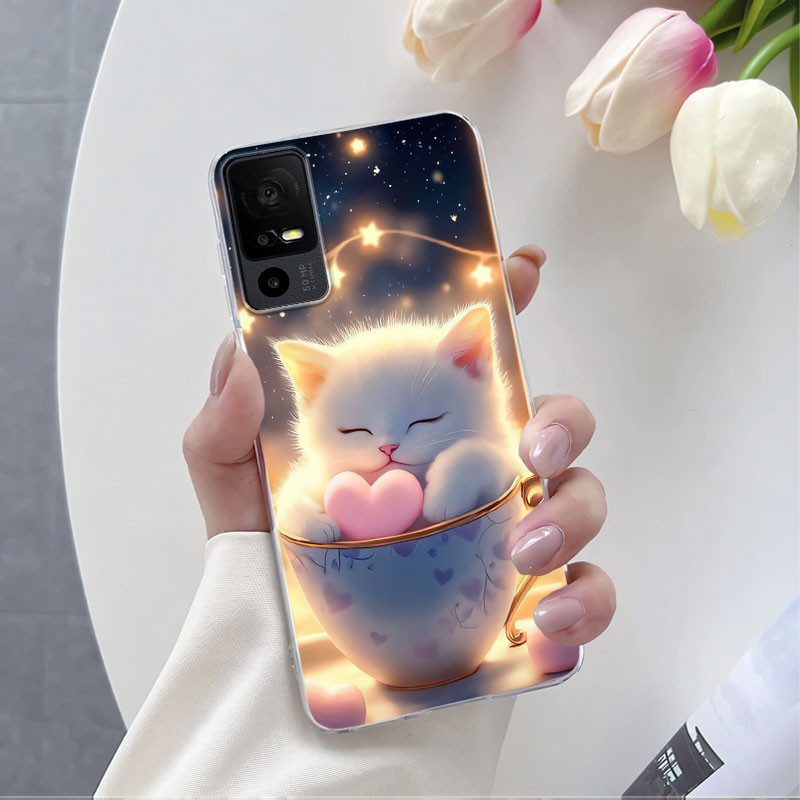 Cachorro Gato Fofo Para TCL 40 SE 40 NxtPaper 4G 5G 40 T T608DL 405 403 Capa Flor De Silicone Macio Transparente 40SE Má