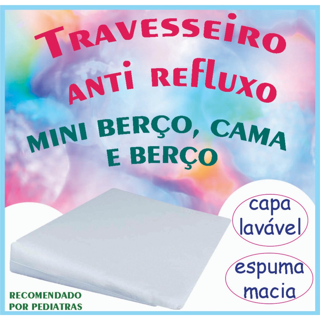 Travesseiro Antirefluxo Para Berço Mini Cama Antialérgico com Capa Lavável (Capa + Espuma)