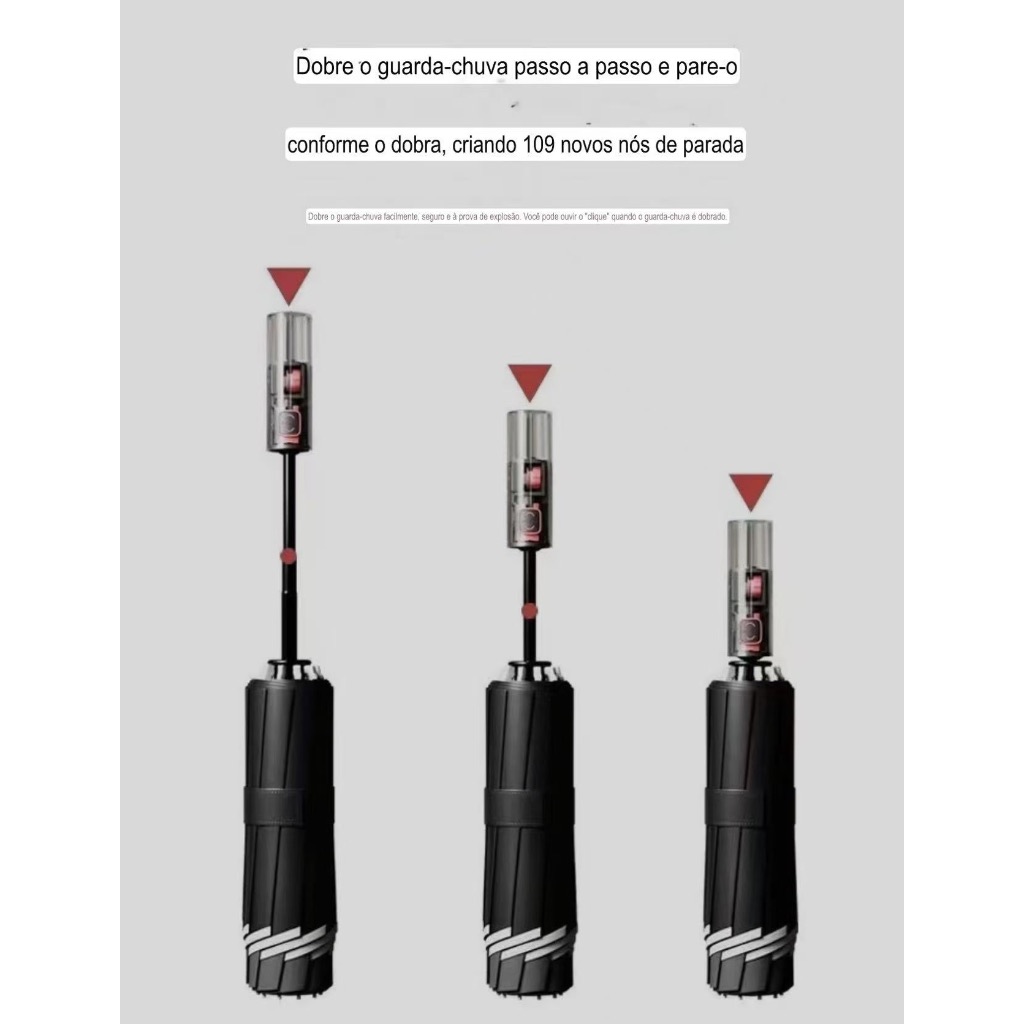 Guarda-chuva automático de 10 nervuras pode ser recolhido em três seções